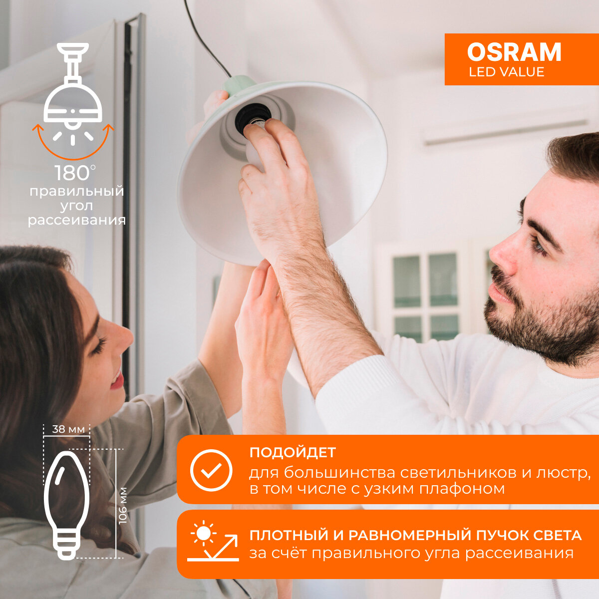 Лампочка светодиодная Osram свеча 10 Ватт E14 белый свет 4000K Led LV CLB FR матовая 800 лм набор 5шт интересное: