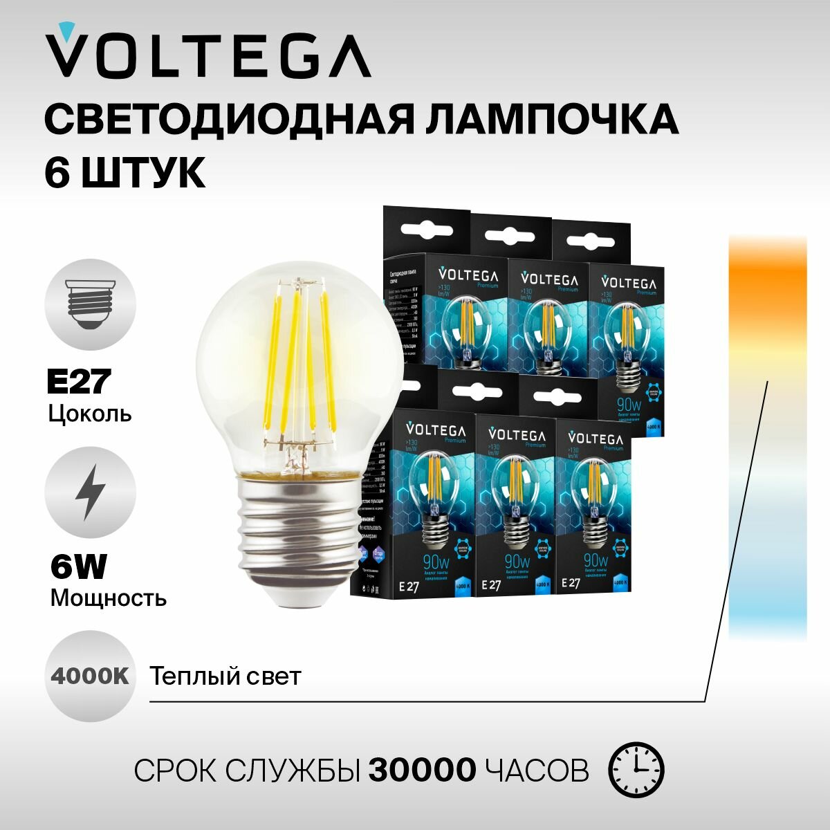 Купить Лампочка светодиодная E27 форма груши 9W нейтральный свет Voltega Crystal Graphene Globe 4000K упаковка 6 шт.