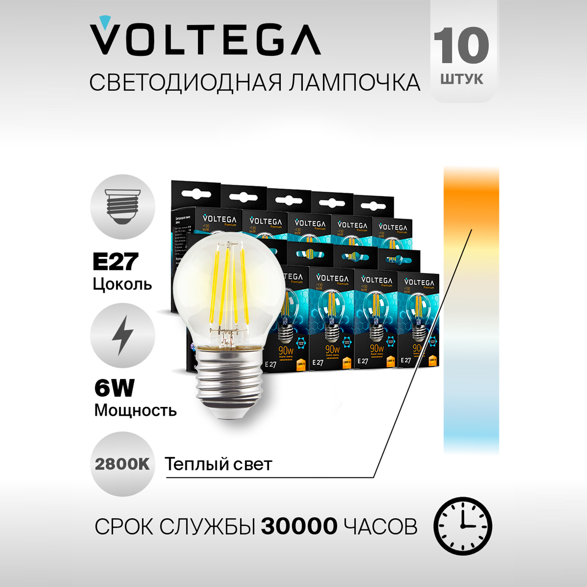 Купить Лампочка светодиодная E27 форма груши 9W теплый свет Voltega Crystal Graphene Globe 2800K упаковка 10 штук