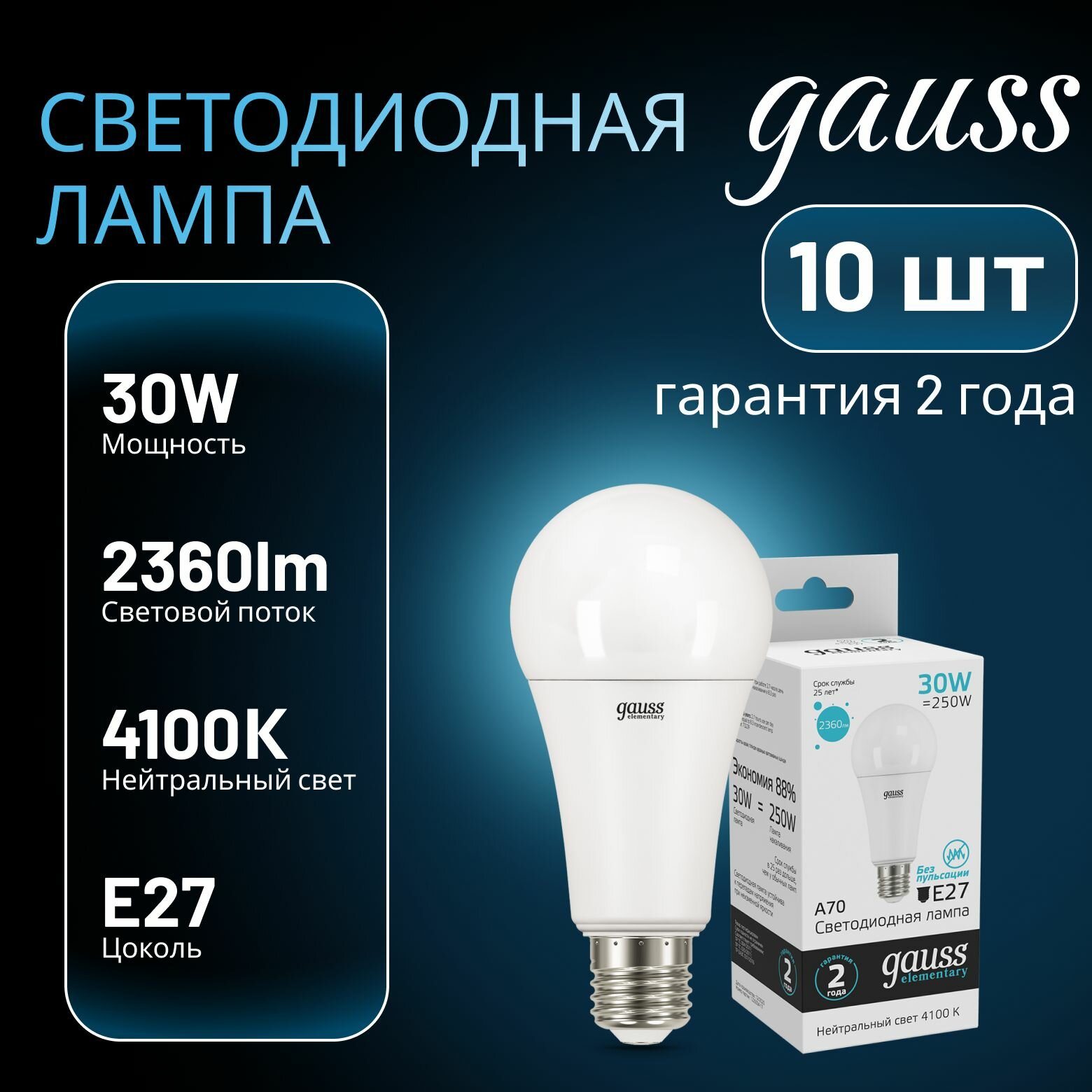 Лампа светодиодная Elementary 30Вт A70 грушевидная 6500К холод. бел. E27 2390лм GAUSS 10шт