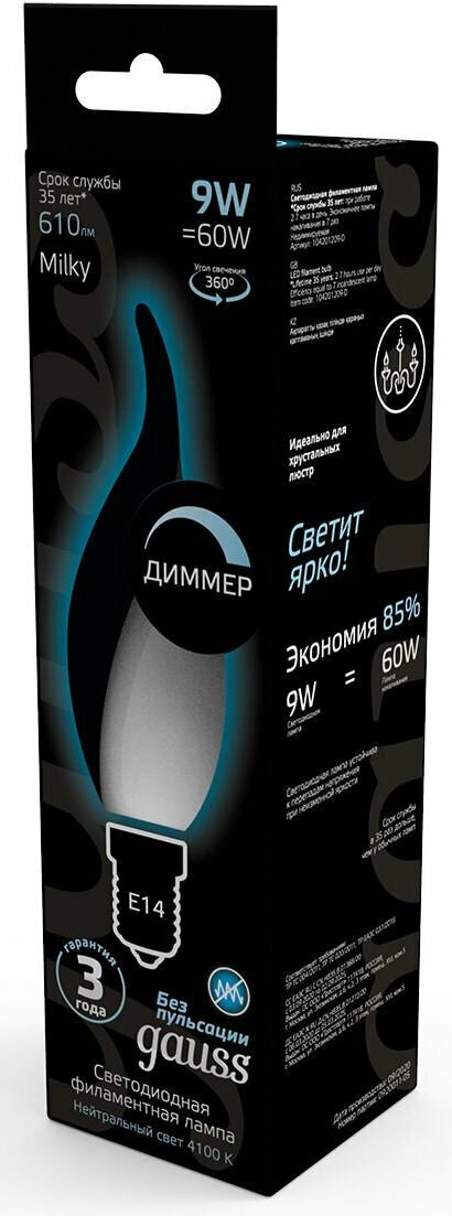 Ниже Вы можете прочитать отзывы на Лампа светодиодная Gauss Filament 104201209-D 9Вт цок: E14 свеча 220B 4100K св. свеч. бел. нейт. (упак., ознакомится с подробными характеристиками, посмотреть интересные обзоры и фотографии на Лампа светодиодная Gauss Filament 104201209-D 9Вт цок: E14 свеча 220B 4100K св. свеч. бел. нейт. (упак..