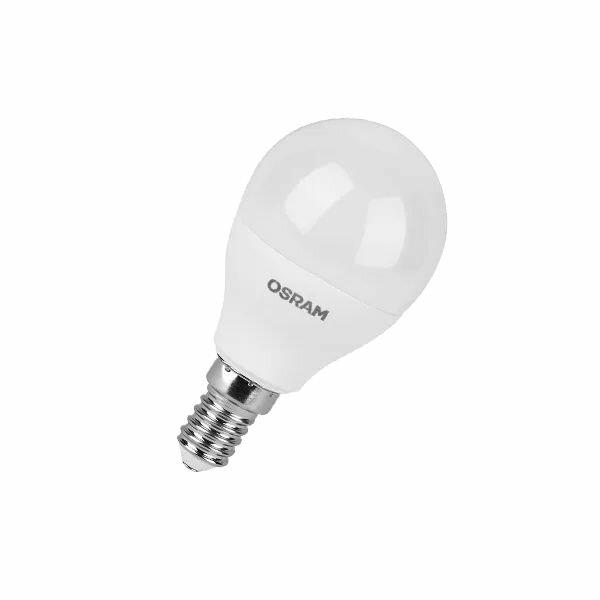 10шт/уп. Лампа LED Шарик 7Вт 220-240V E14 560Лм 4000К Угол 180 град. D-47mm L-89mm Свет Дневной белый OSRAM, уп. 10шт