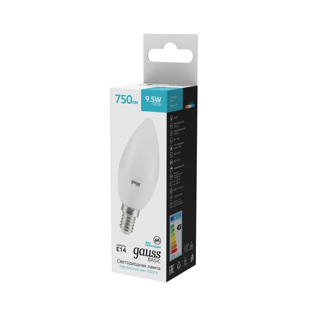 Купить Лампа светодиодная Gauss E14 170-240 В 9.5 Вт свеча матовая 750 лм нейтральный белый свет
