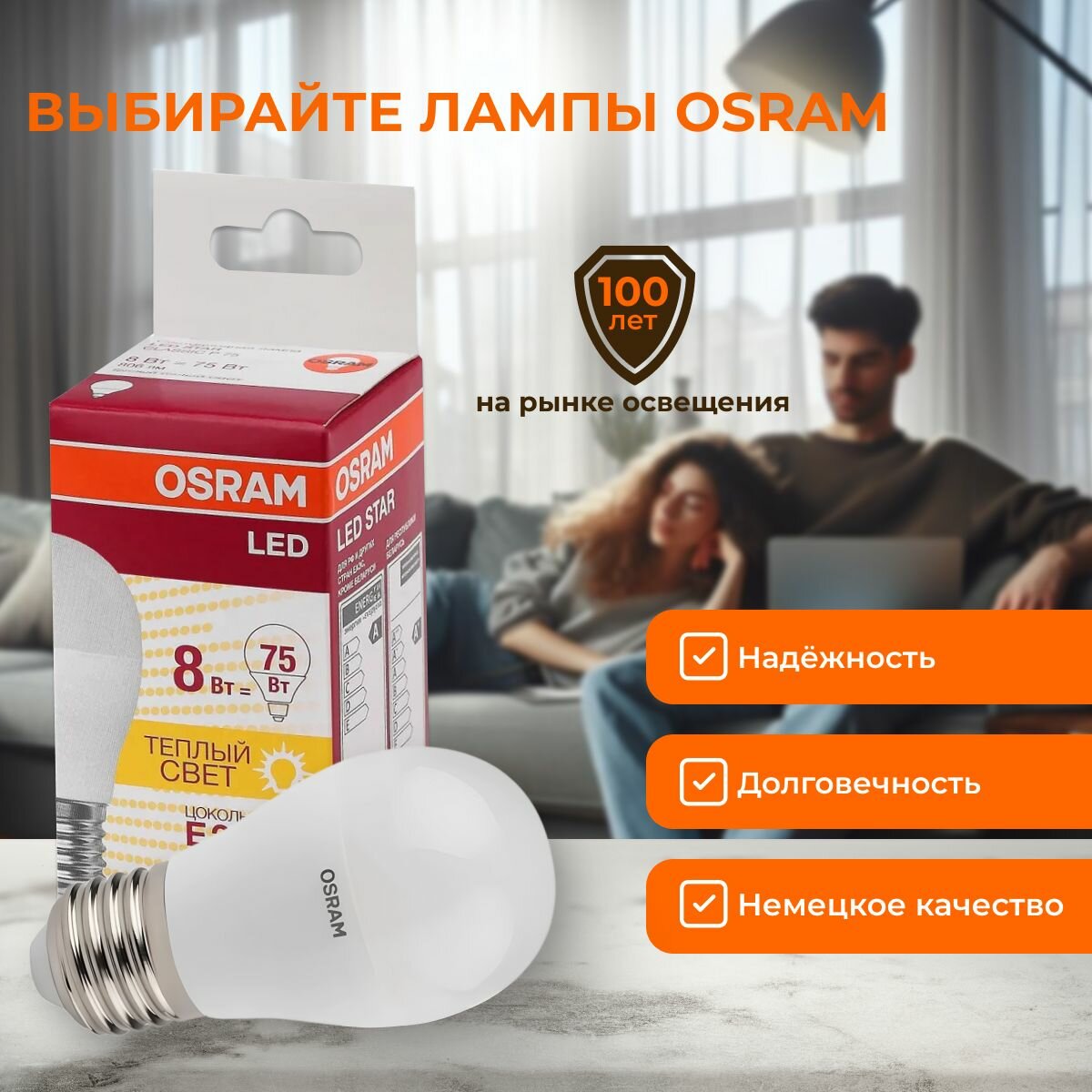 Ниже Вы можете прочитать отзывы на Светодиодная лампочка OSRAM 8 Ватт E27 3000K теплый белый, матовая шар, 220-240V, LED STAR, 830, 806лм, ознакомится с подробными характеристиками, посмотреть интересные обзоры и фотографии на Светодиодная лампочка OSRAM 8 Ватт E27 3000K теплый белый, матовая шар, 220-240V, LED STAR, 830, 806лм.