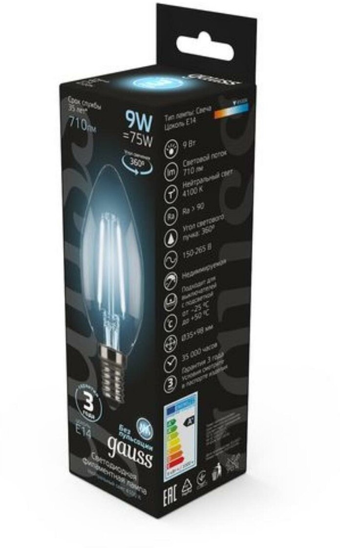 Лампа светодиодная филаментная Filament 9Вт свеча 4100К нейтр. бел. E14 710лм GAUSS 103801209(5 штук.) интересное: