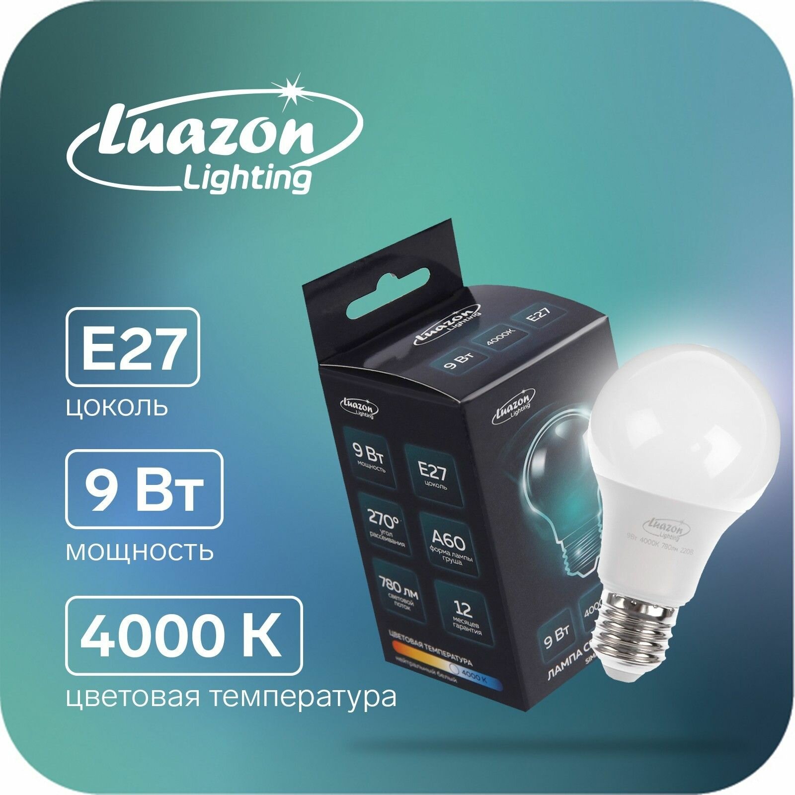 Купить Лампа cветодиодная Luazon Lighting, A60, 9 Вт, E27, 780 Лм, 4000 К, дневной свет