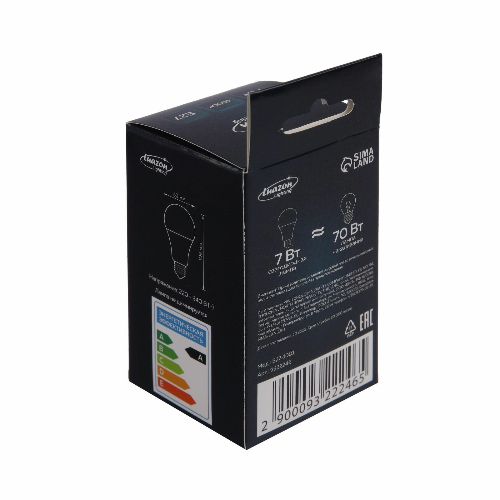 Купить Лампа cветодиодная Luazon Lighting, A60, 7 Вт, E27, 630 Лм, 4000 К, дневной свет