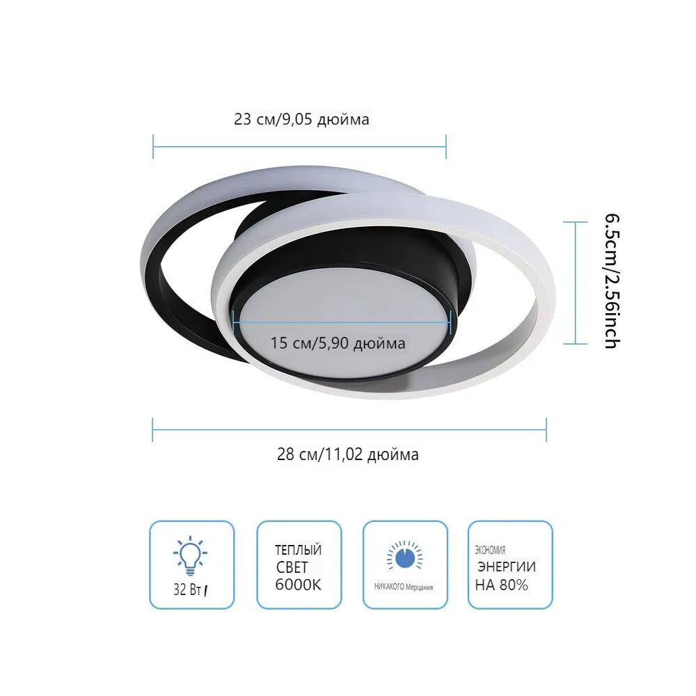 СохранитьПотолочный светильник,Osairous,658727,Двойной круг, алюминий, черный, белый свет, 32 Вт интересное: