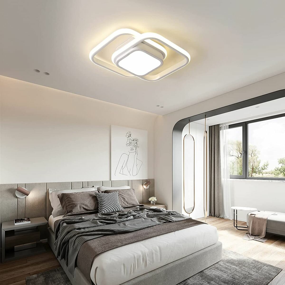 Потолочный светильник,Osairous,658727,Квадрат, белый, алюминий, белый свет, 32 Вт