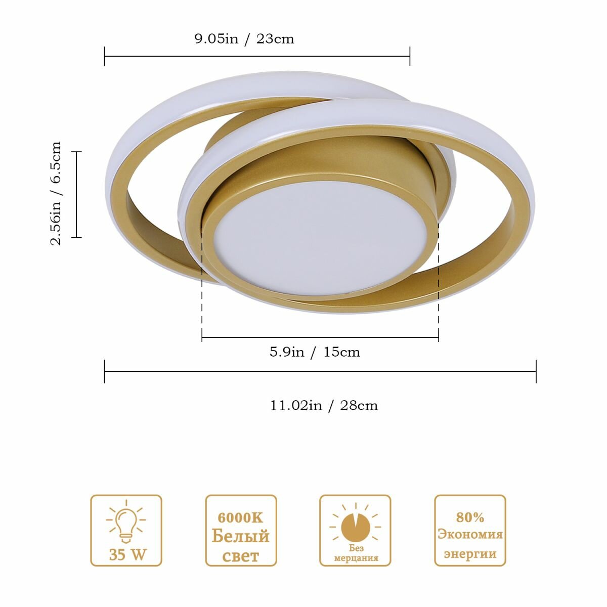 СохранитьПотолочный светильник, Osairous, 659147, двойной круглый светодиодный потолочный светильник из алюминия, золотисто-белый, 35 Вт, 5-10 м² интересное: