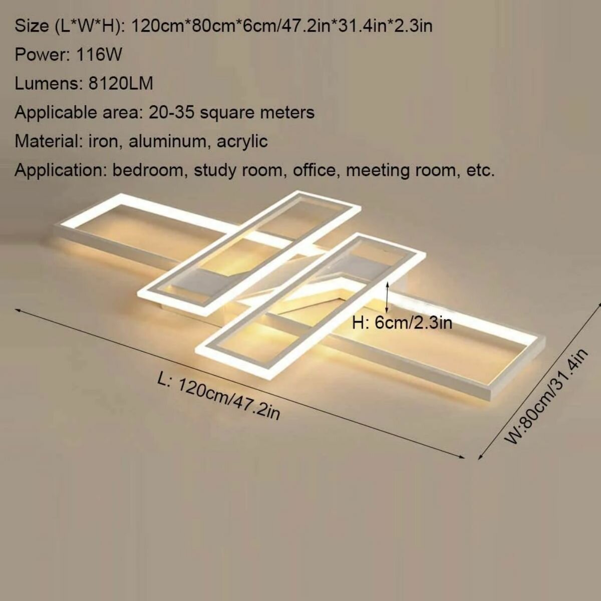 Потолочный светильник,Osairous,659109,Прямоугольник, белый, белый свет, 54 Вт