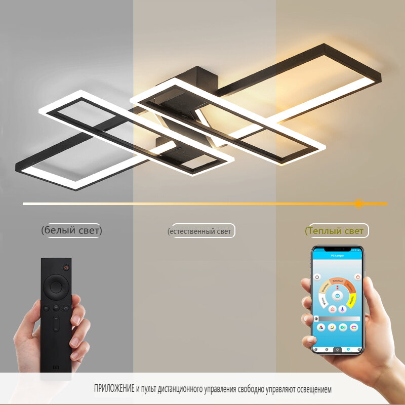 Потолочный светильник,Osairous,659109,Прямоугольная ветвь, алюминий, белый, 116 Вт, пульт дистанционного управления с неполярной регулируемой полосой