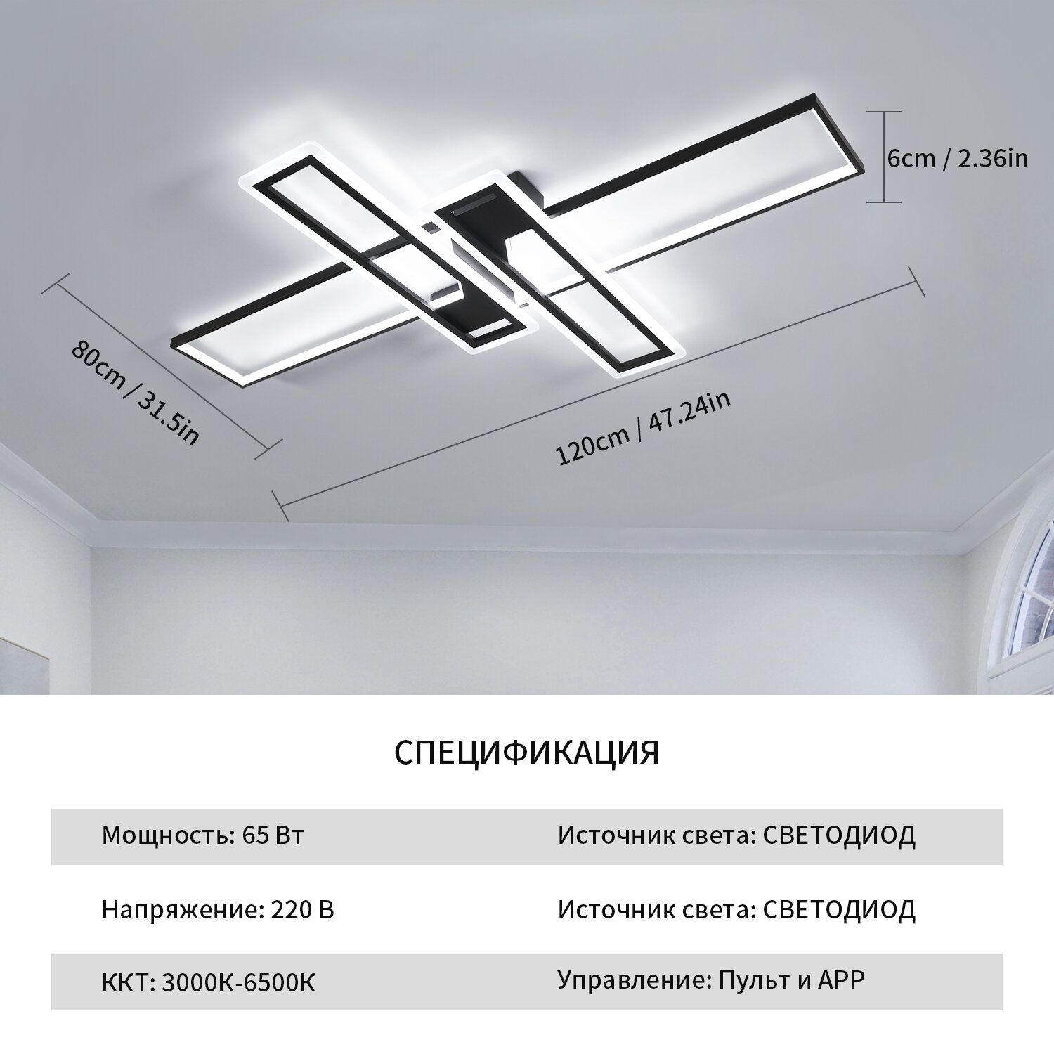 Потолочный светильник,Osairous,659109,Прямоугольный, неупорядоченный оптический диапазон с дистанционным управлением, черный, 46Вт