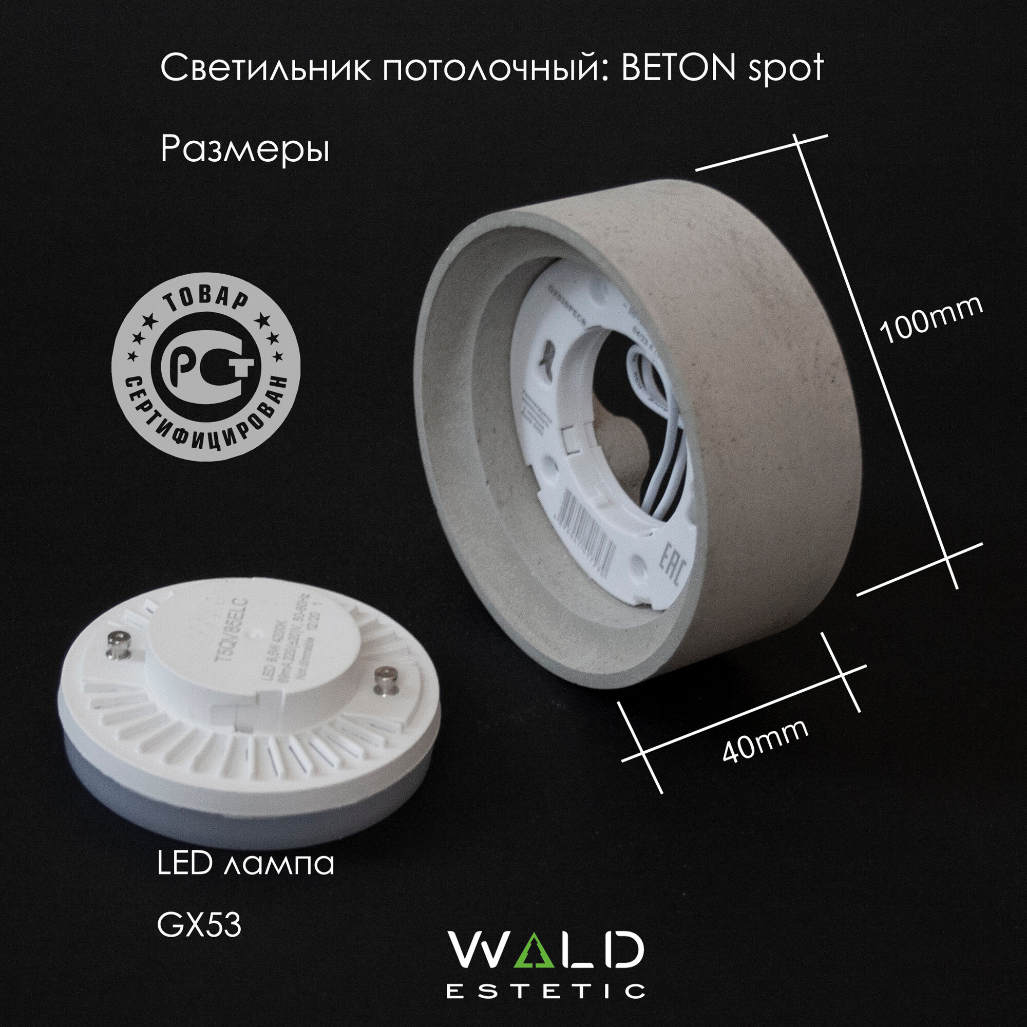 Светильник потолочный Beton Spot от Wald Estetic, бетон, цоколь GX53, мощность 8.5W комплект 4шт интересное: