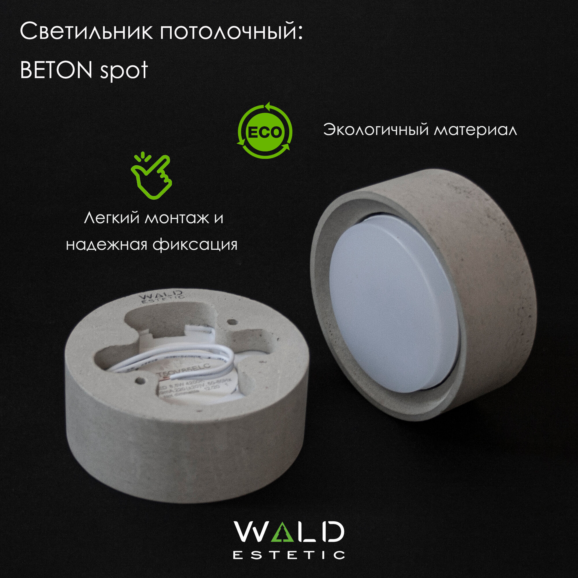 Светильник потолочный Beton Spot от Wald Estetic, бетон, цоколь GX53, мощность 8.5W комплект 1шт. интересное:
