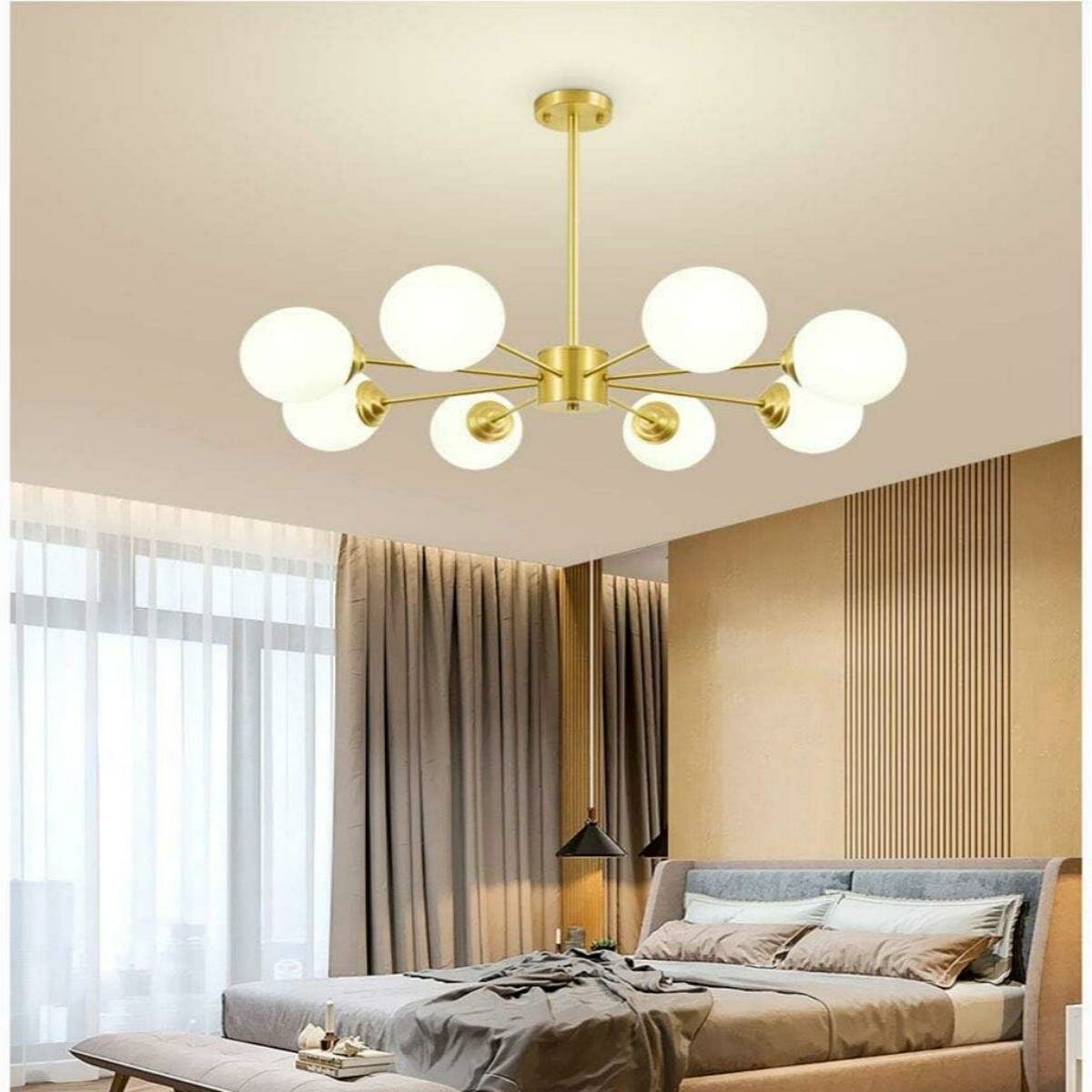 Потолочный светильник,Osairous,659295, Золотой, стеклянный абажур, 8 головок, светильник E27, 60 Вт интересное: