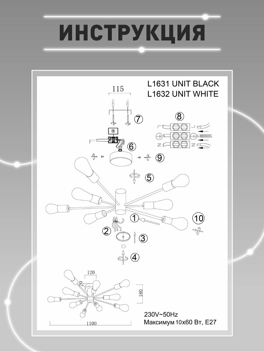 Люстра потолочная Lamplandia L1632 UNIT WHITE, E27*10 макс 60Вт интересное:
