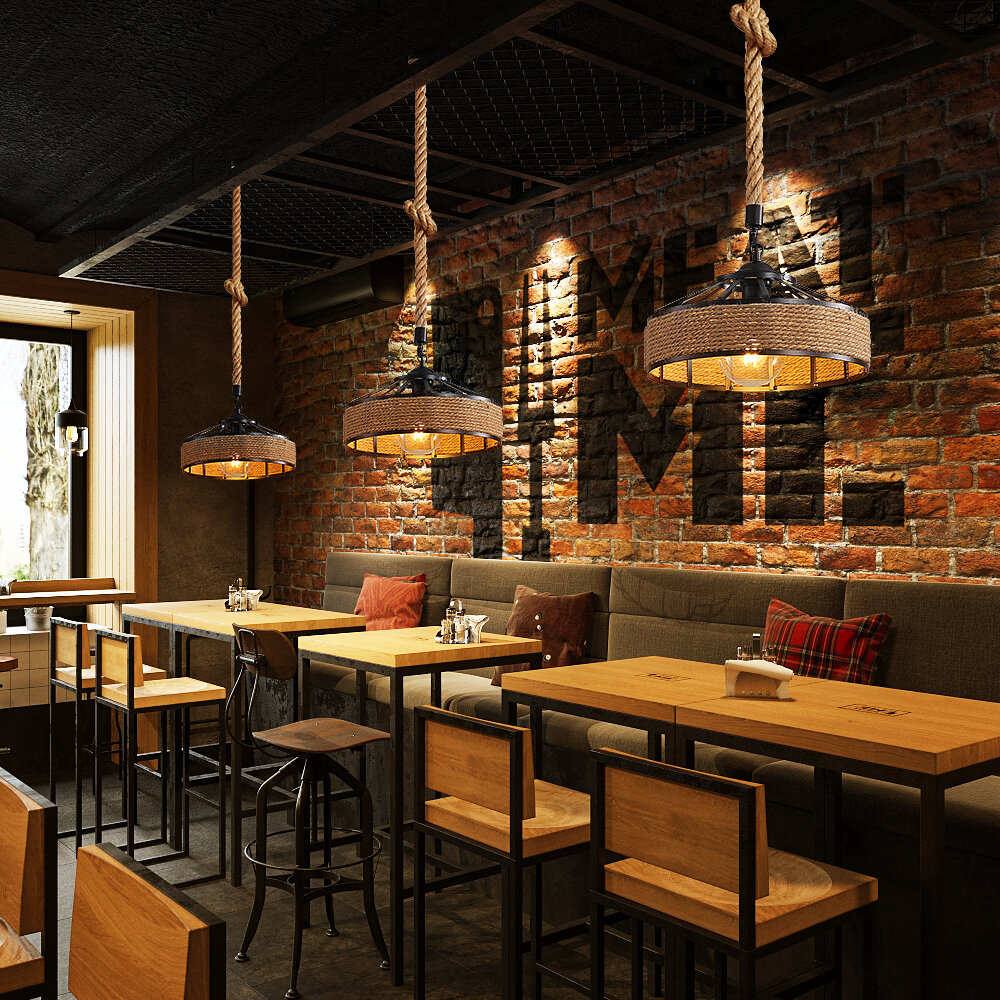 Купить Люстры,Osairous,659066, Веревка из конопли круглая, железная, черная, ламповая головка E27, без источника света