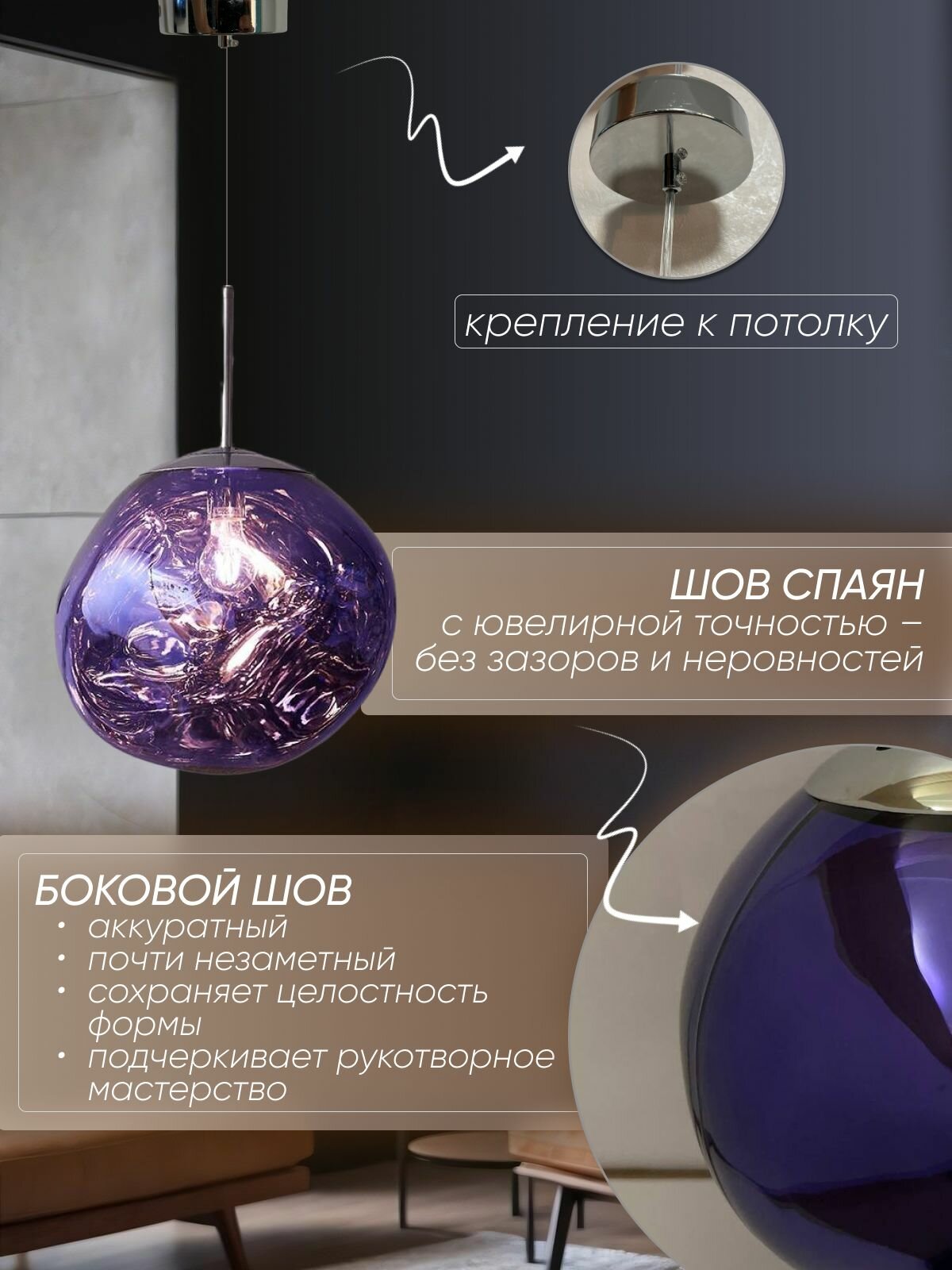 Светильник подвесной потолочный лавовый Хром (Chrom) 15см