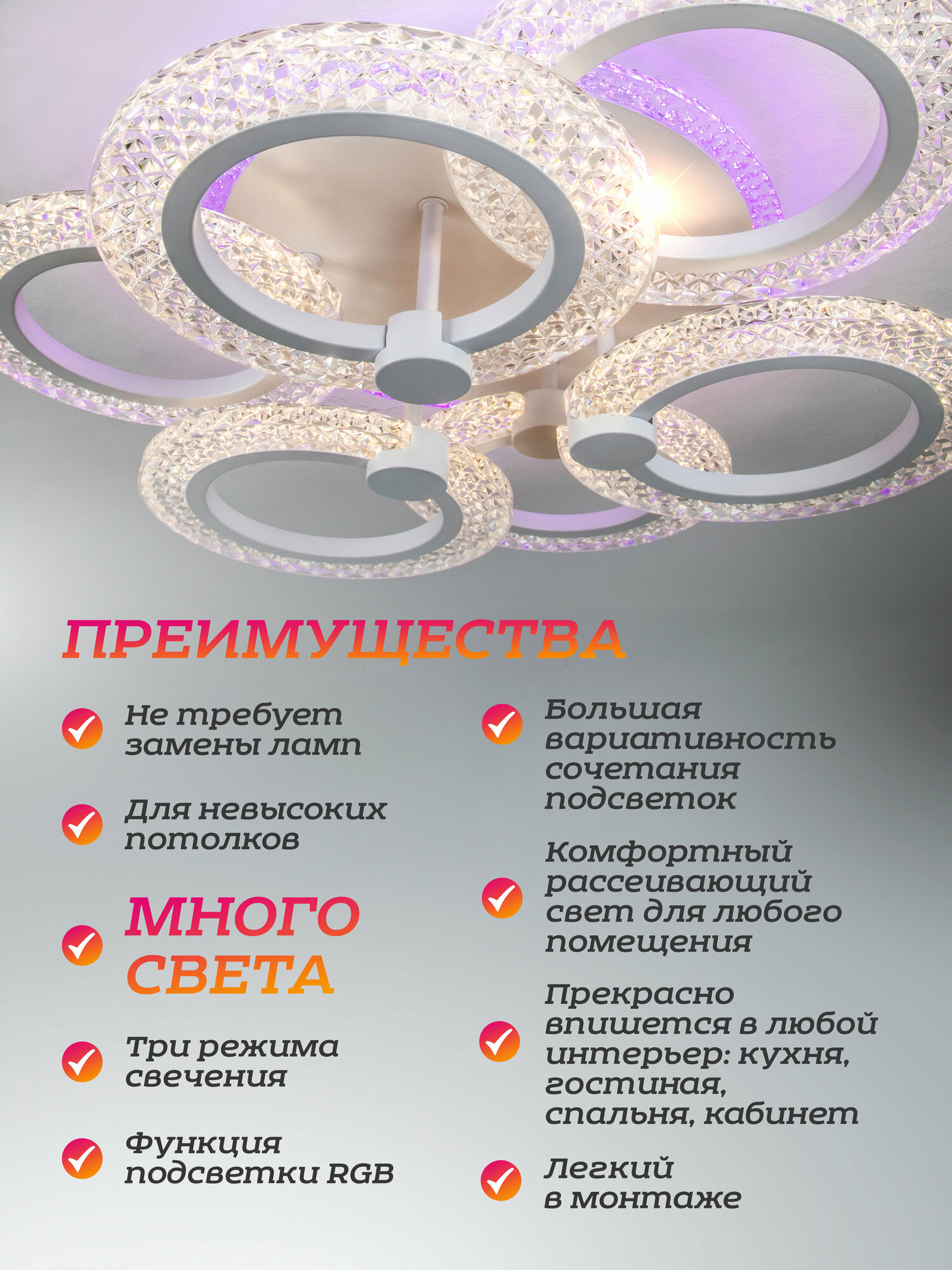 Люстра потолочная светодиодная LED4U L2100-6 с пультом дистанционного управления, RGB подсветка интересное: