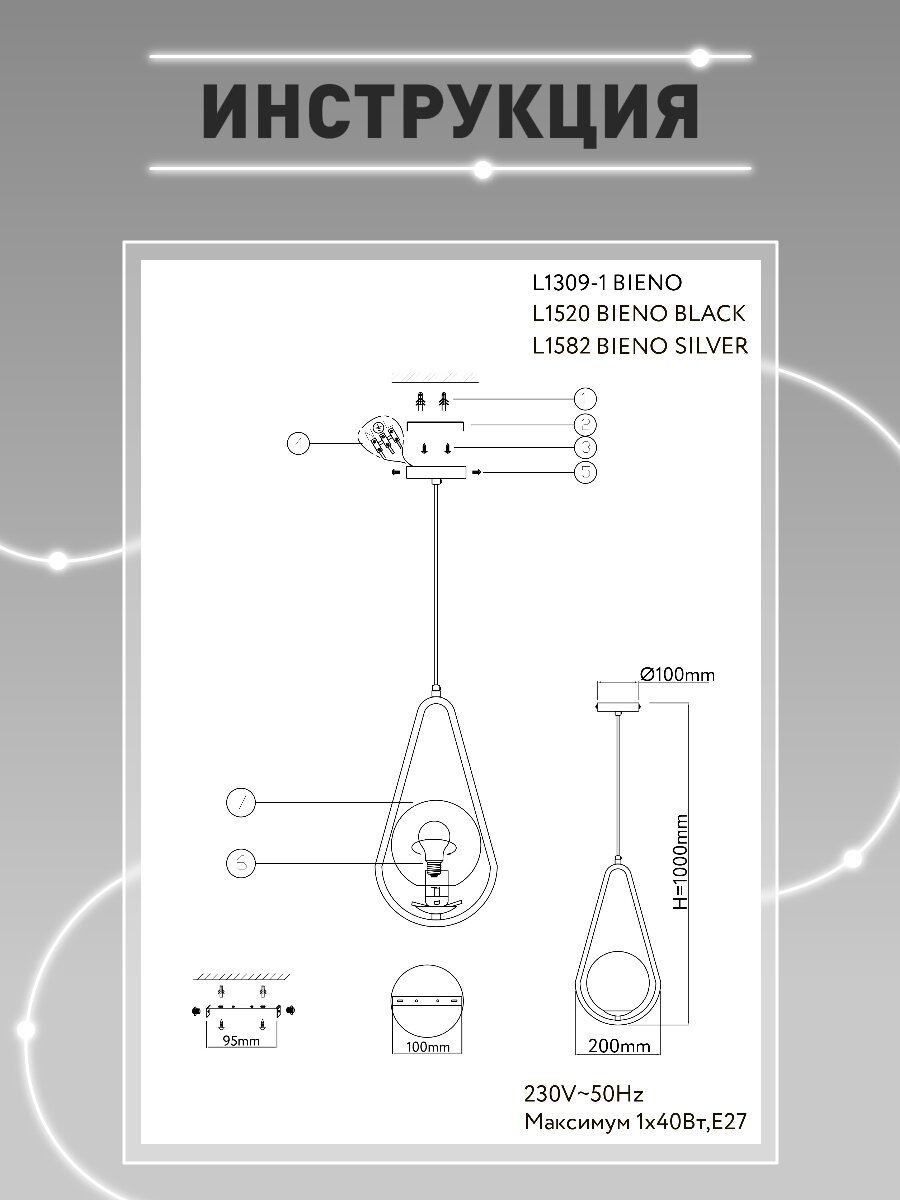 Светильник подвесной Lamplandia L1309-1 BIENO, Е27*1 макс 40Вт
