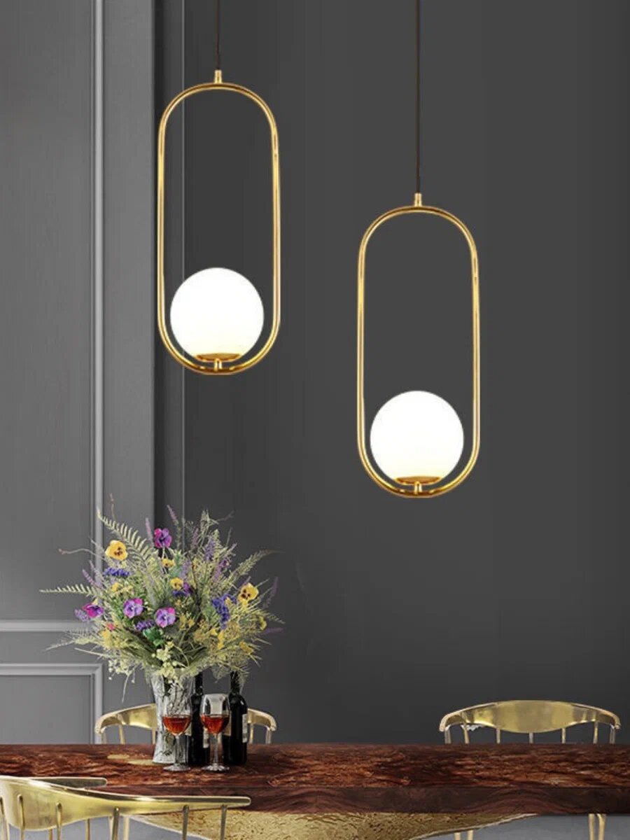 Настенно-потолочный подвесной светильник золотой с белым стеклянным шаром овальный интересное: