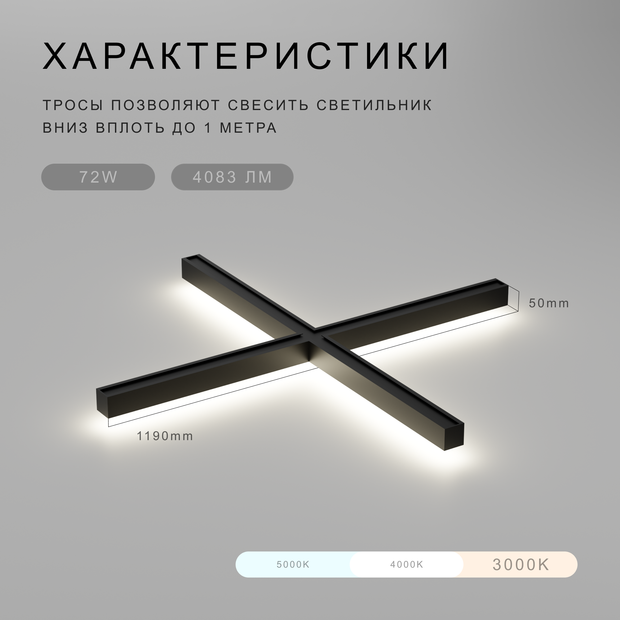 Подвесной светильник "Светолиния", 3000К, 72 Вт, 119*119*5*5 см, люстра светодиодная, лампа черная интересное: