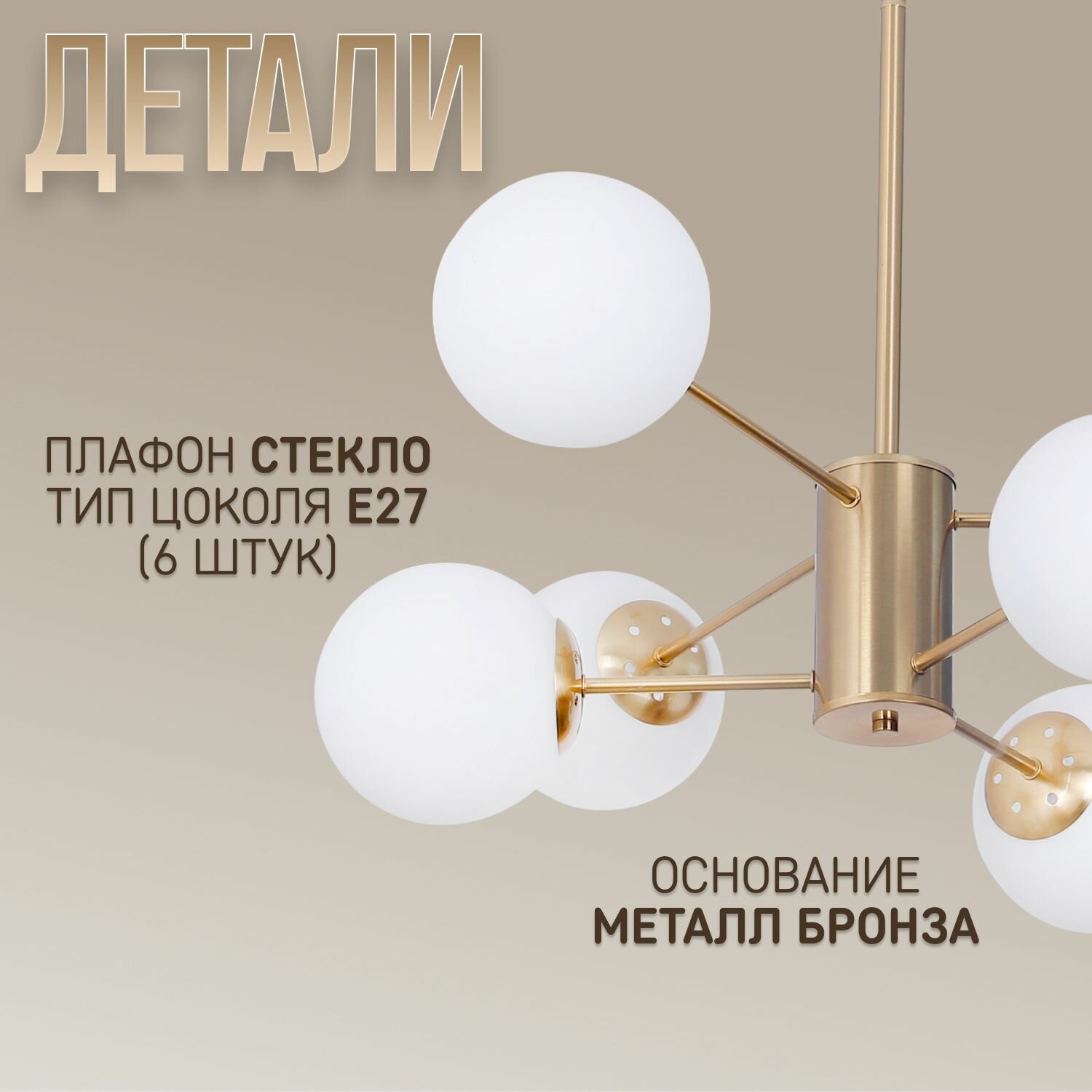 Люстра потолочная лофт, люстра подвесная Элиссвет 30986K/6 GD интересное: