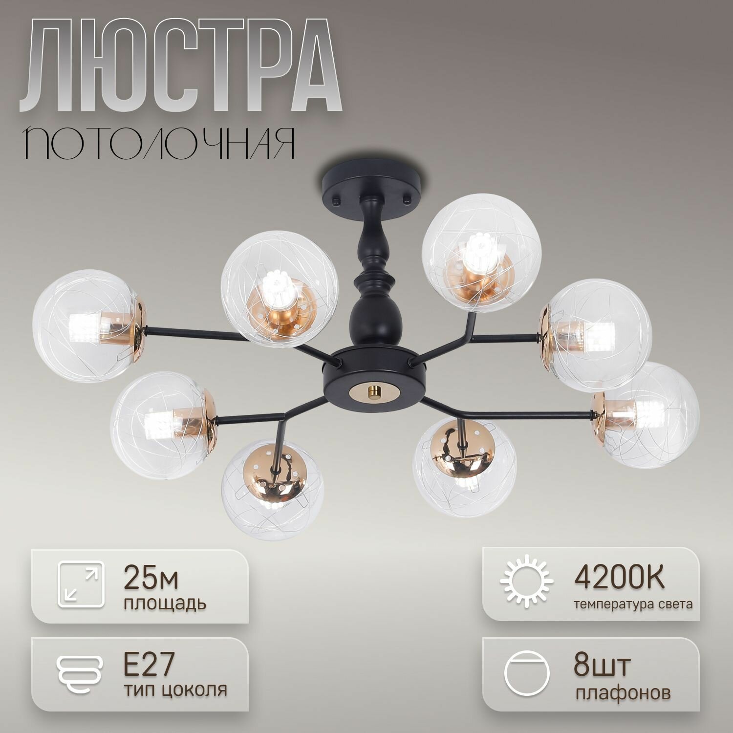 Люстра потолочная лофт, люстра подвесная Элиссвет 11297HX/ 8 BK интересное: