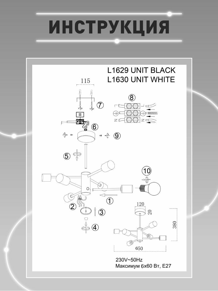 Люстра потолочная Lamplandia L1630 UNIT WHITE, Е27*6 макс 60Вт интересное: