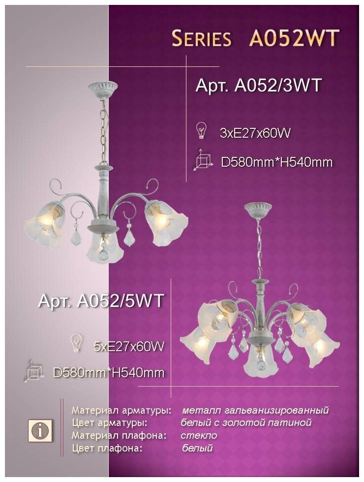 Люстра подвесная BORTEN A052/5 WT, белый интересное:
