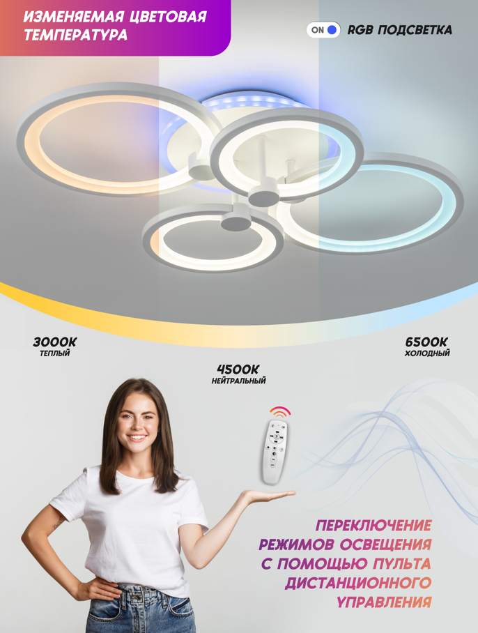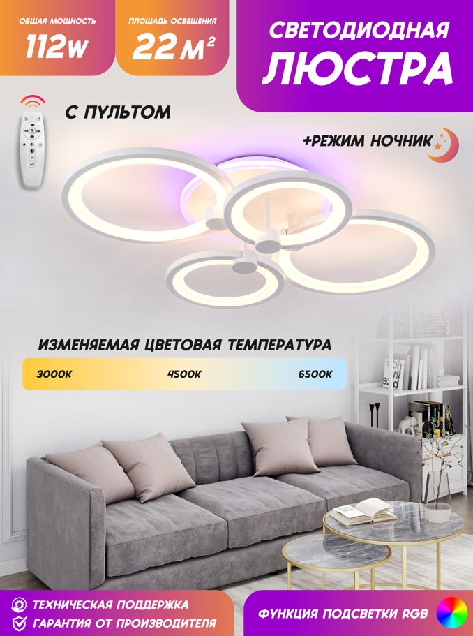 СохранитьЛюстра потолочная ЯЛампа YA2413-4 WH светодиодная 112 W пульт управления RGB-подсветка, изменяемая цветовая температура интересное: