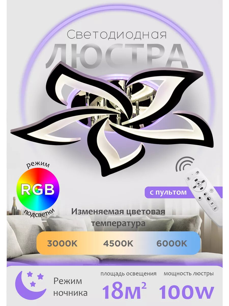 Светодиодная люстра ЯЛампа YA2410-5 CR, пульт дистанционного управления, 100Вт