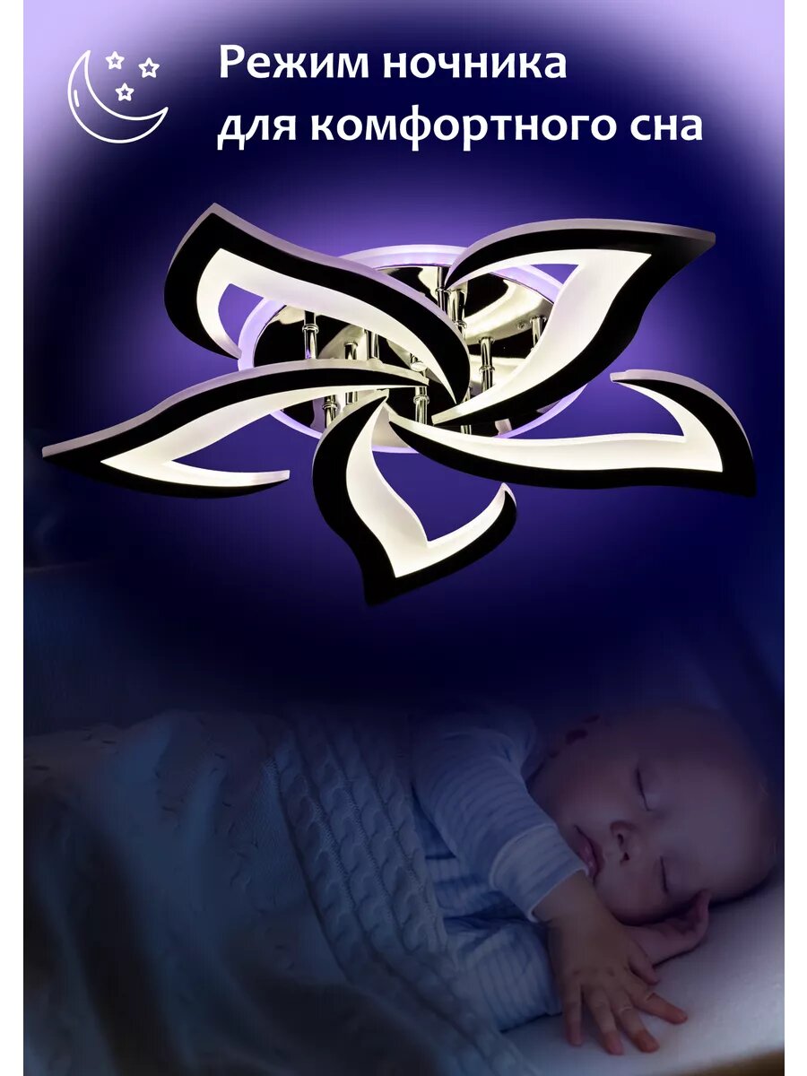 Люстра потолочная светодиодная YA2410-9 WH ночник с пультом для низких потолков