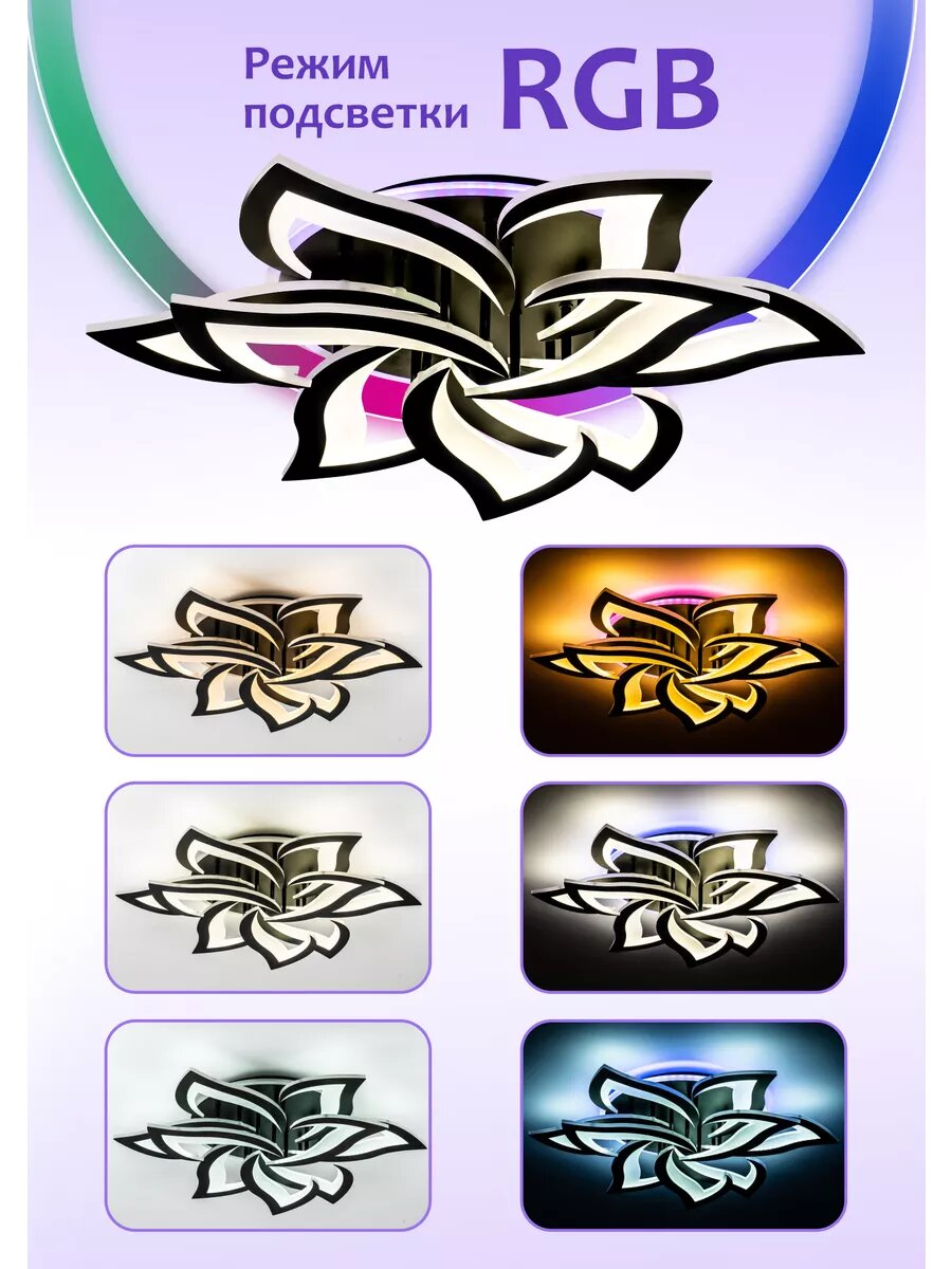 Люстра с пультом светодиодная потолочная 176W, 8 ламп, цветок, большая, белая, LEDCITY