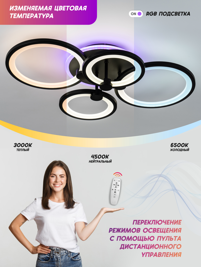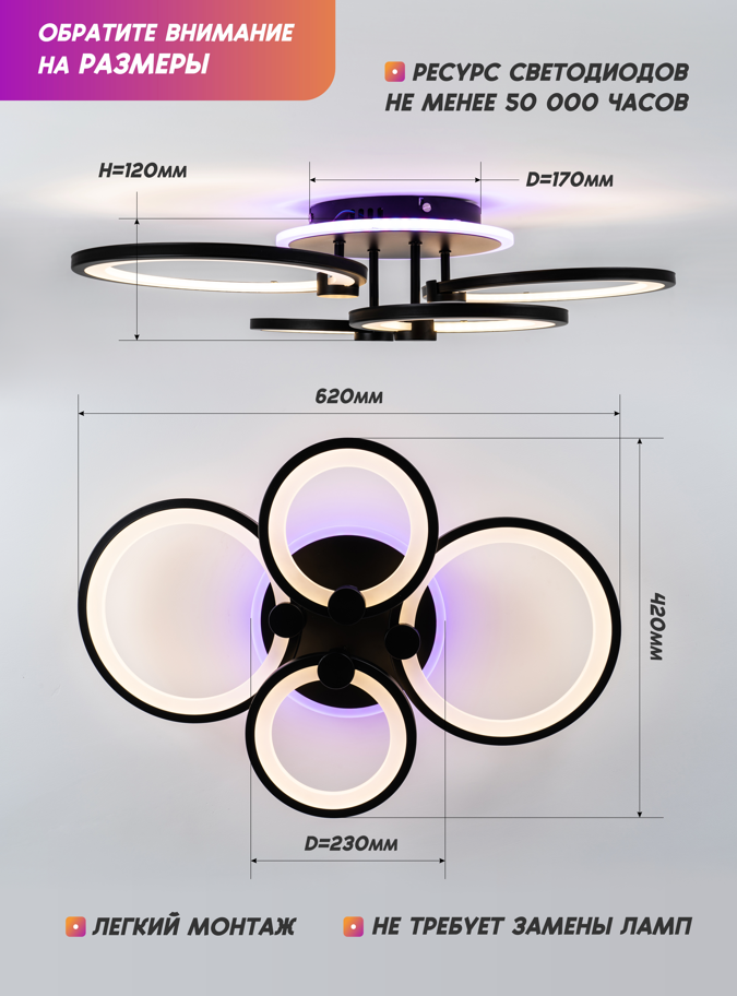 СохранитьЛюстра - ночник с пультом дистанционного управления ЯЛампа YA2413-4 BK интересное: