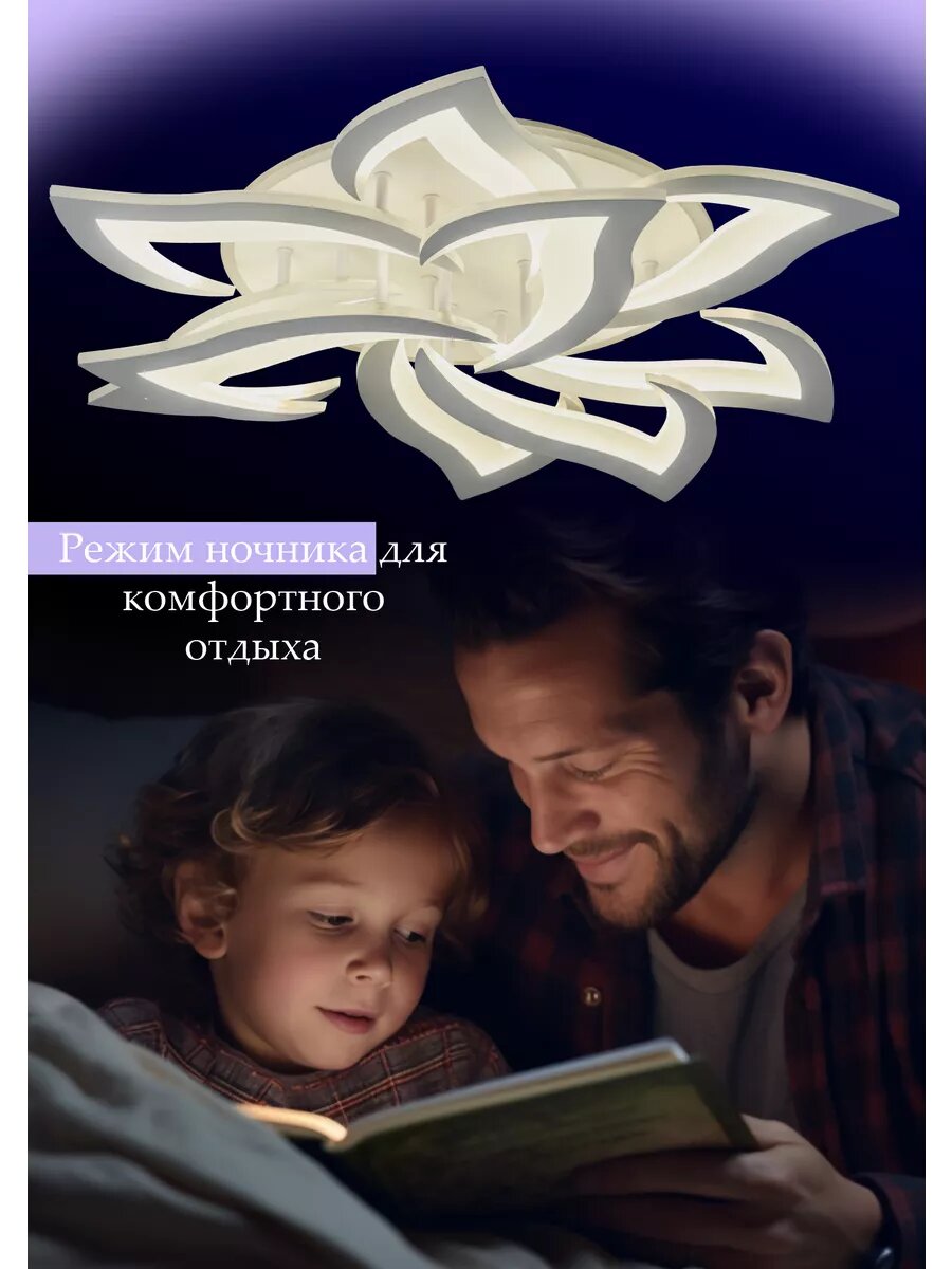 СохранитьЛюстра потолочная светодиодная YA2410-9 WH ночник с пультом для низких потолков интересное: