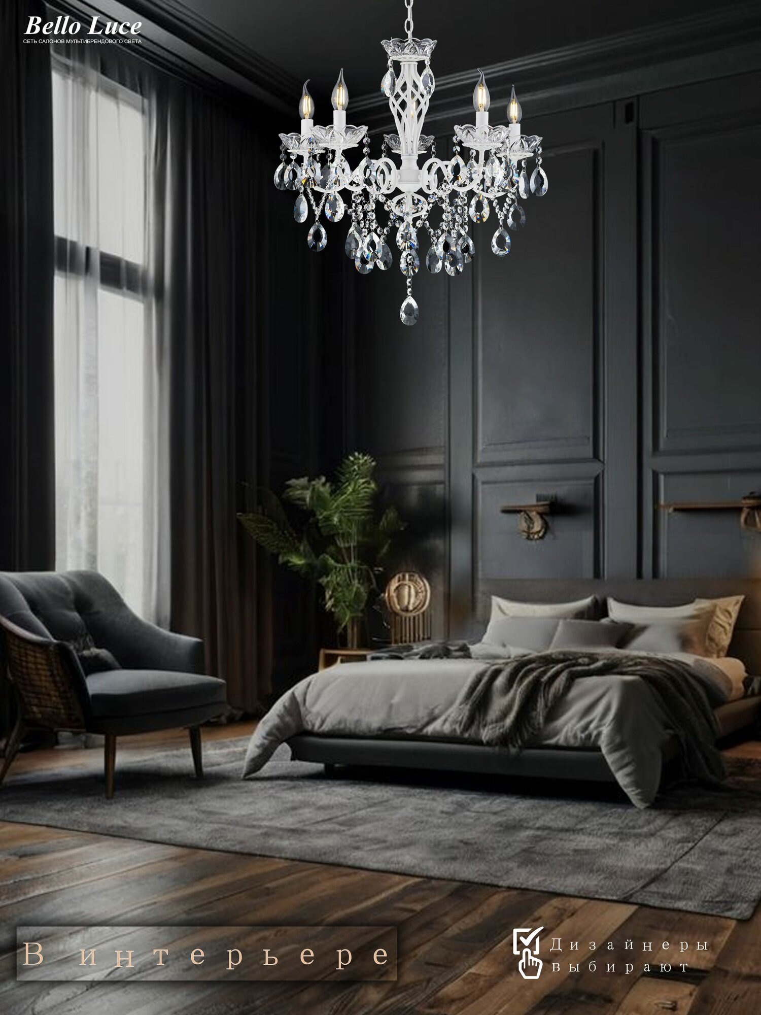 Люстра хрустальная Классика белая подвесная с прозрачными хрустальными подвесками на 5 ламп E14, регулировка по высоте интересное: