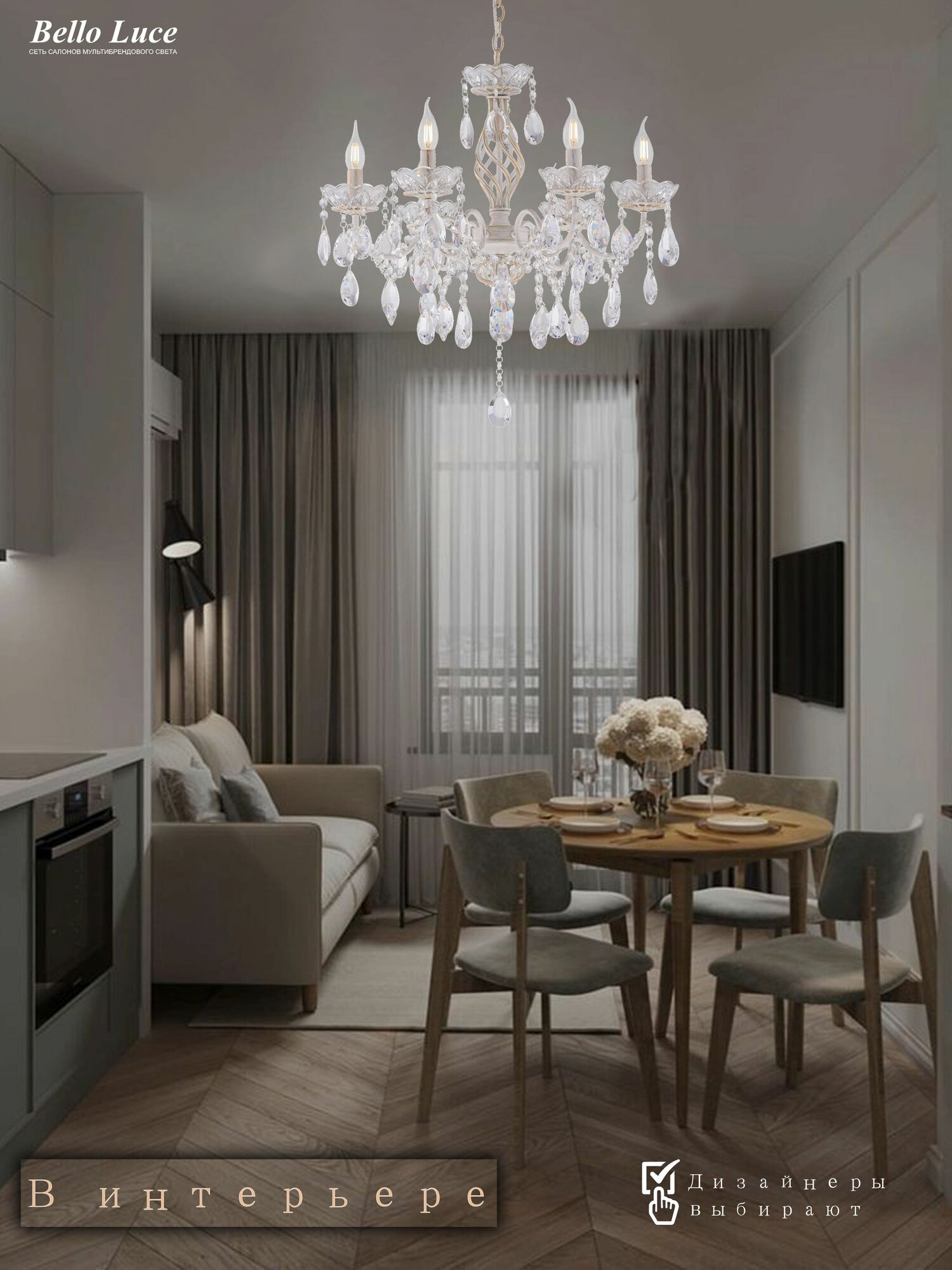 СохранитьЛюстра хрустальная Классика белый+золото подвесная с прозрачными хрустальными подвесками на 6 ламп E14, регулировка по высоте интересное:
