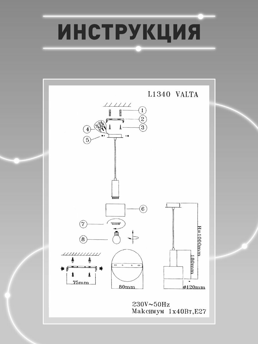 Светильник подвесной Lamplandia L1340 VALTA, Е27*1 макс 40Вт интересное: