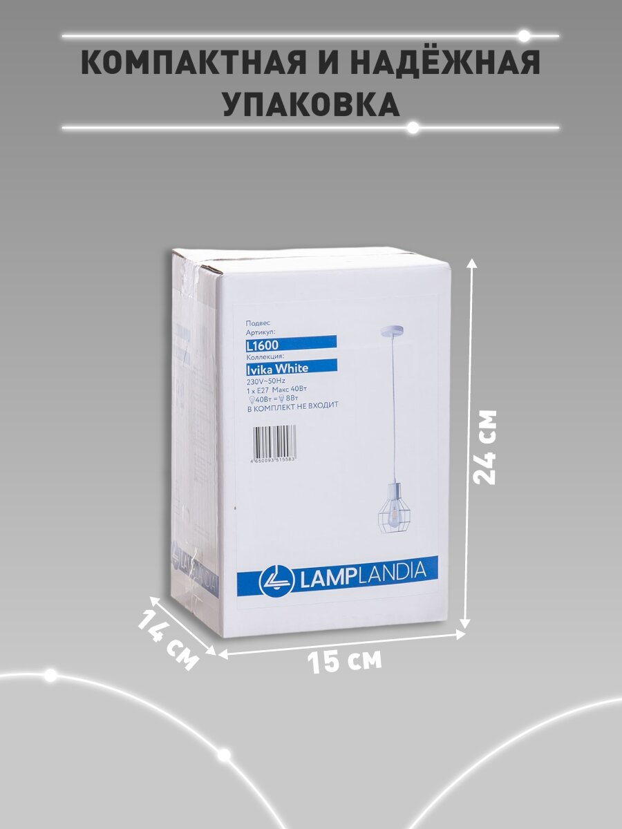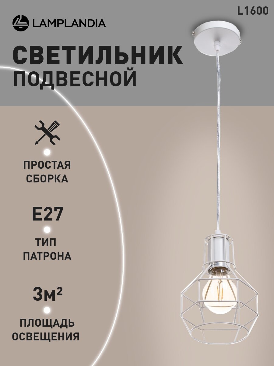 Светильник подвесной Lamplandia L1600 IVIKA WHITE, E27*1 макс 40Вт интересное: