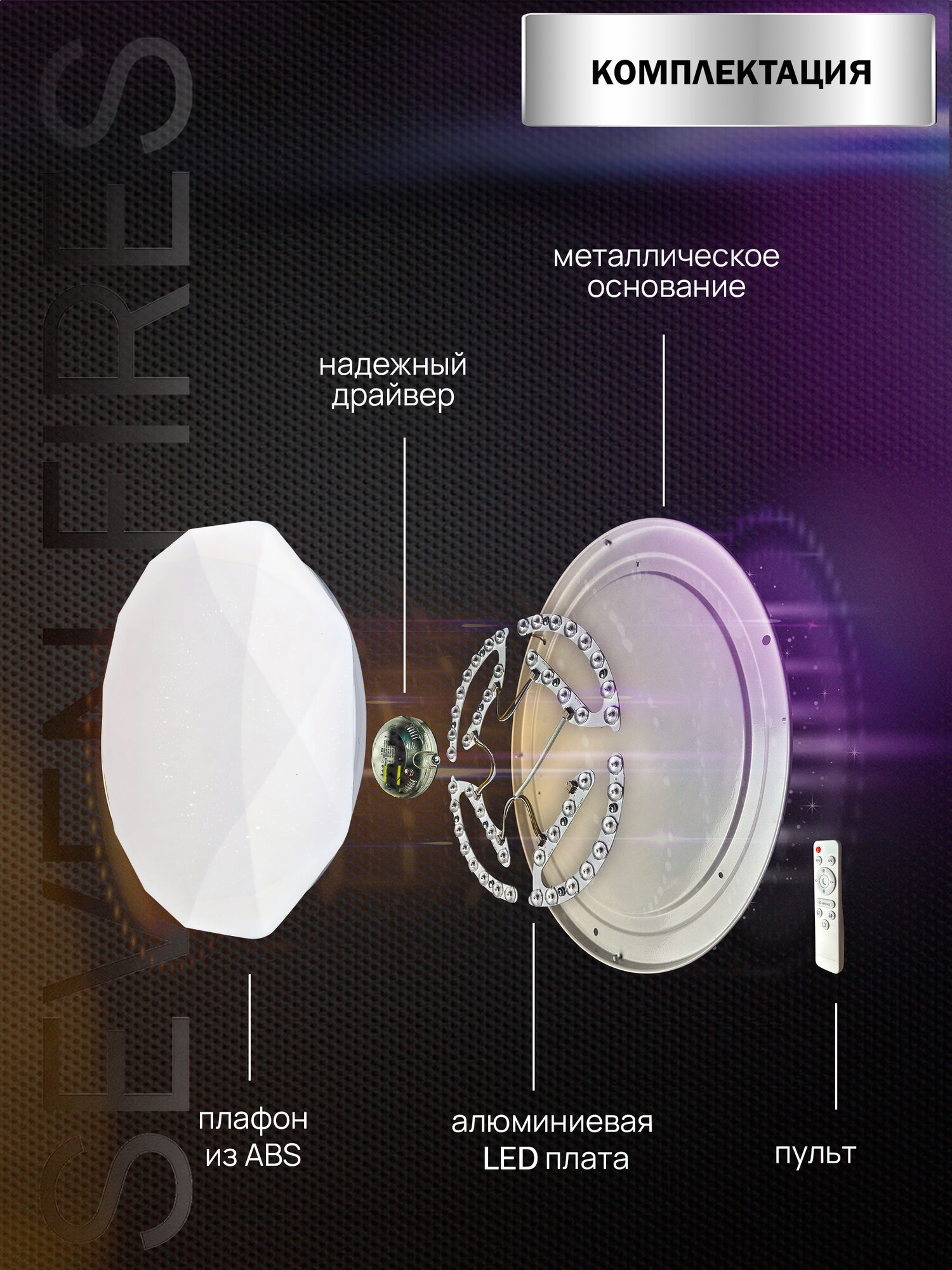 СохранитьЛюстра потолочная светодиодная Семь Огней, белая с пультом, до 25 кв. м. интересное: