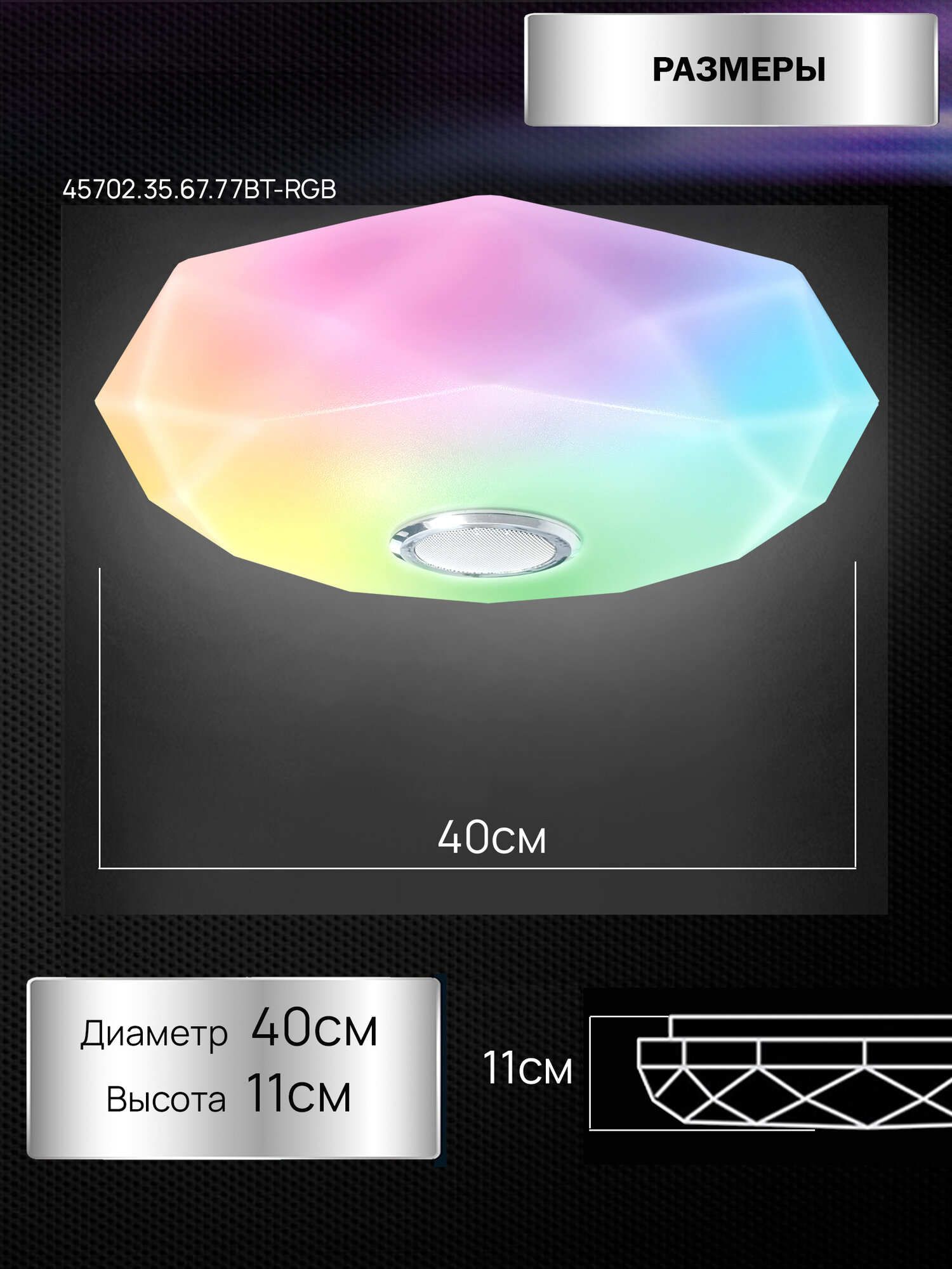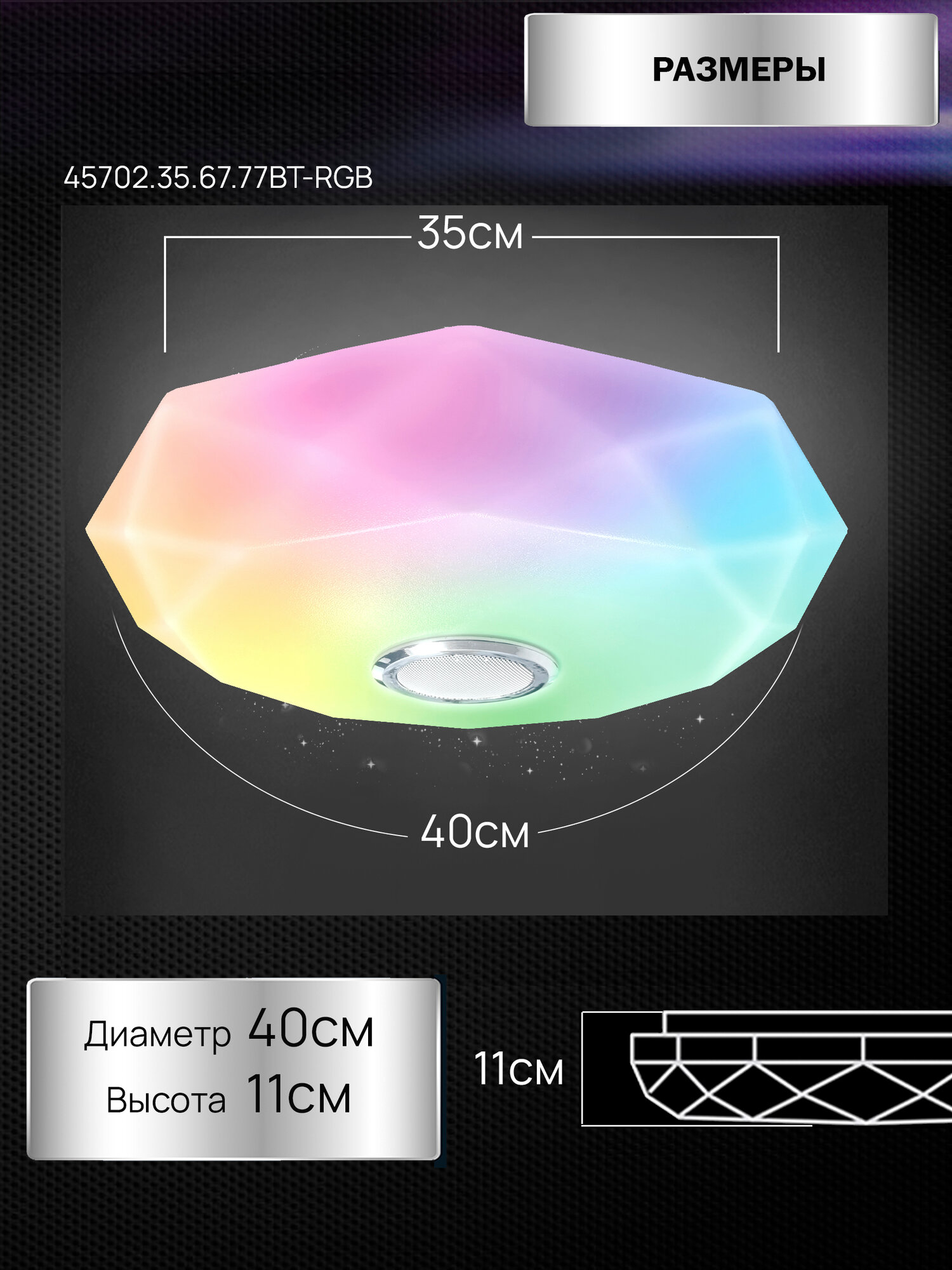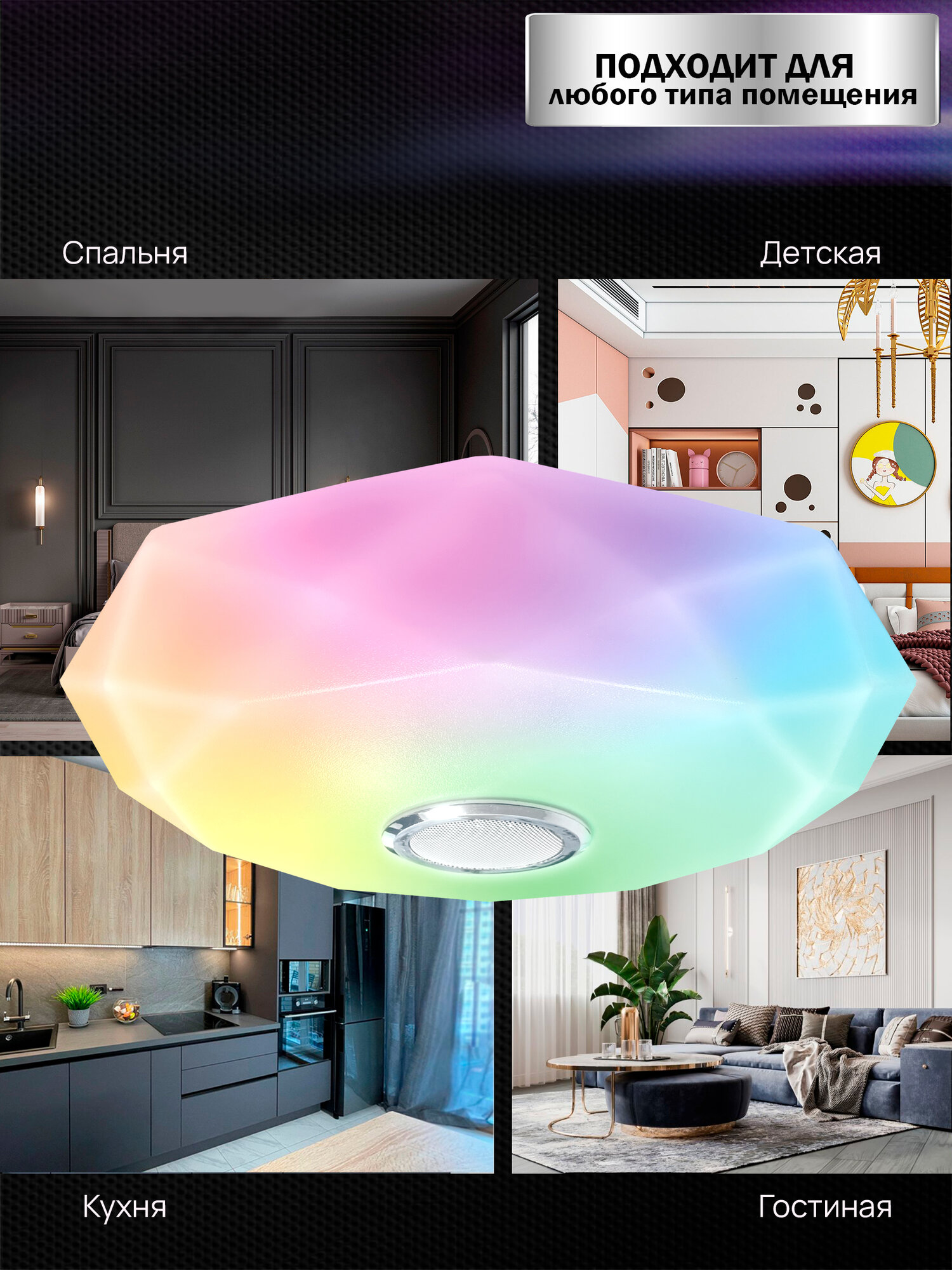 Люстра потолочная светодиодная музыкальная Семь Огней, белая с пультом и RGB подсветкой