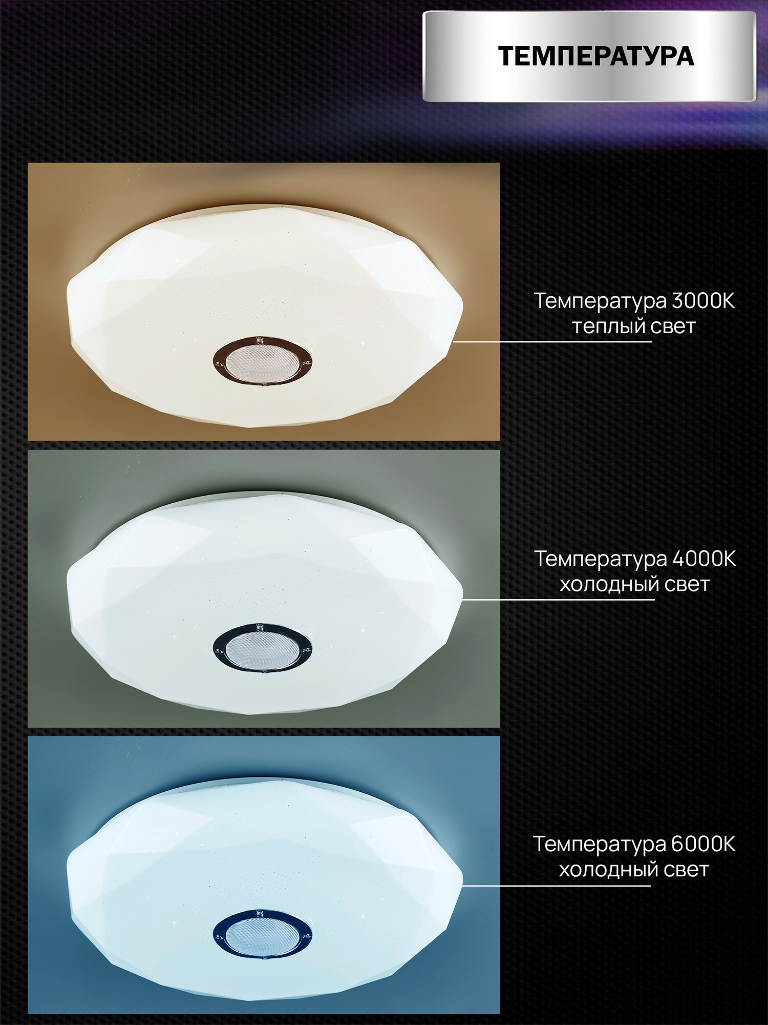Купить Люстра потолочная светодиодная музыкальная Семь Огней , белая с пультом и подсветкой