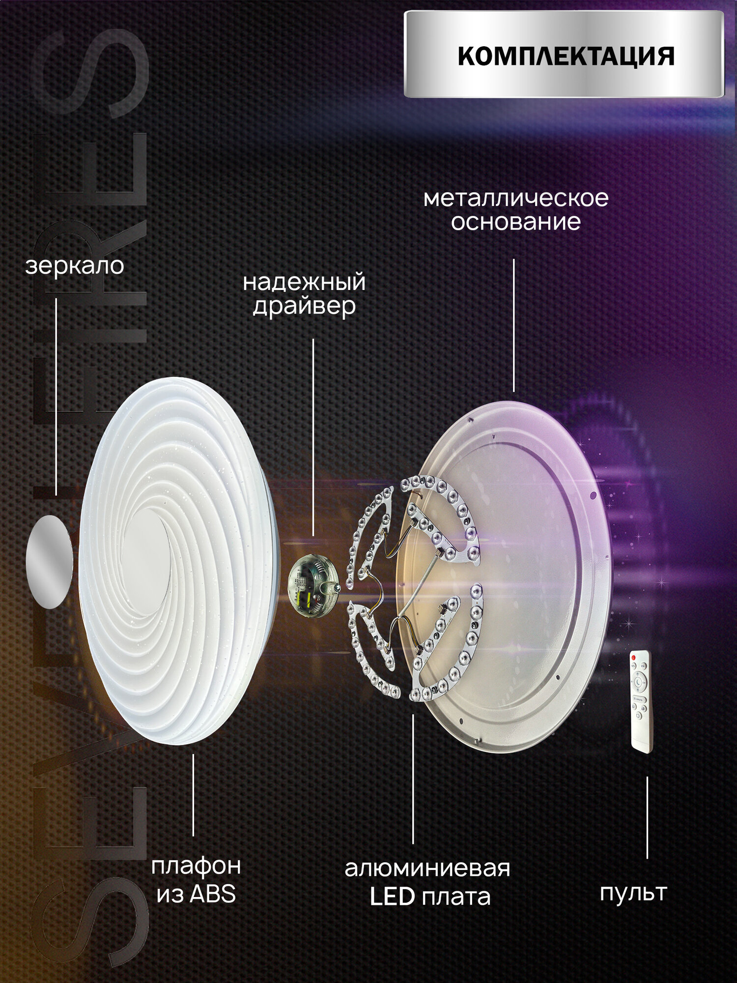 СохранитьЛюстра потолочная светодиодная Семь Огней, белая с пультом до 25 кв. м. интересное: