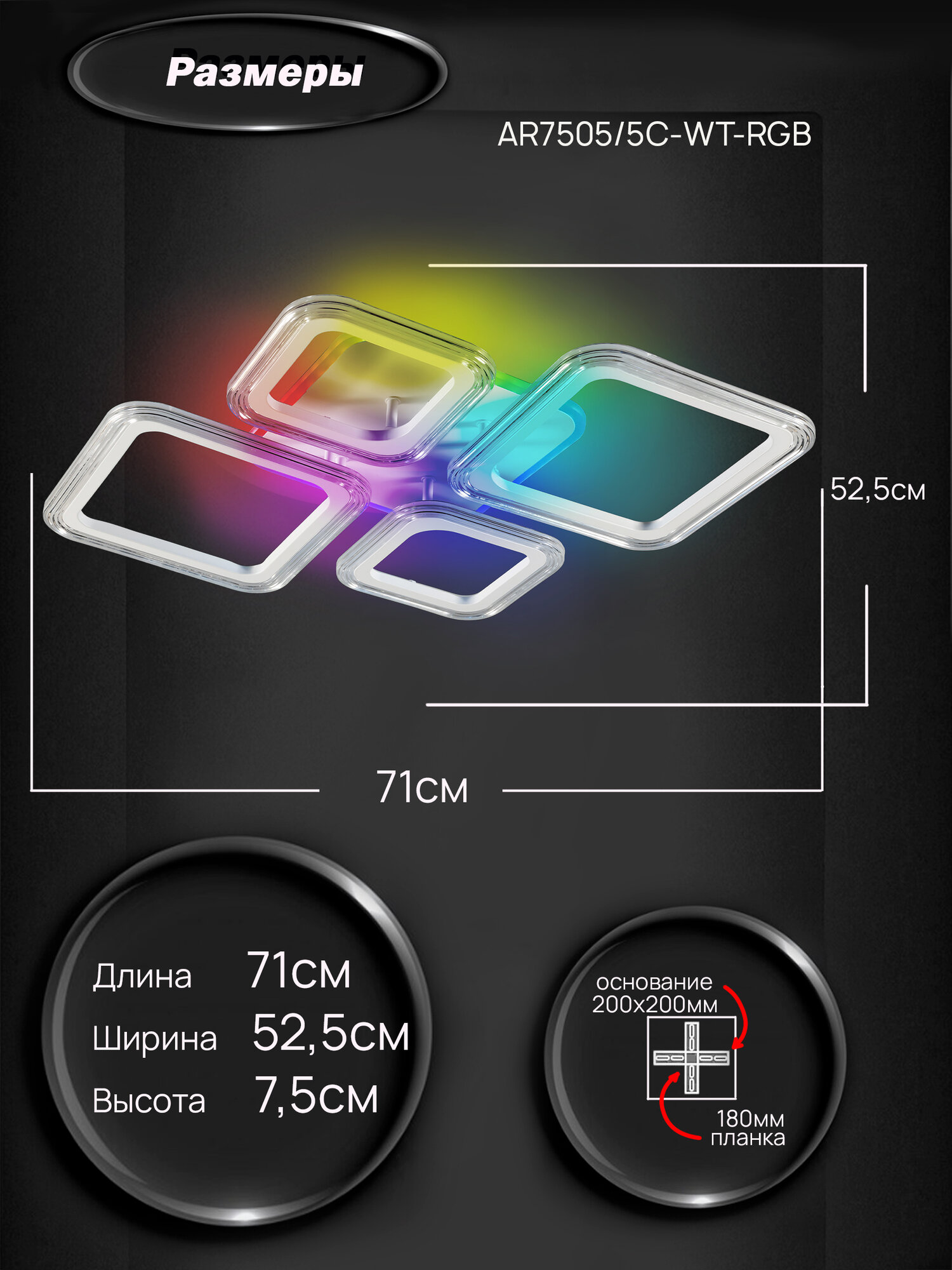 Люстра потолочная светодиодная Семь Огней, белая с пультом и RGB подсветкой интересное: