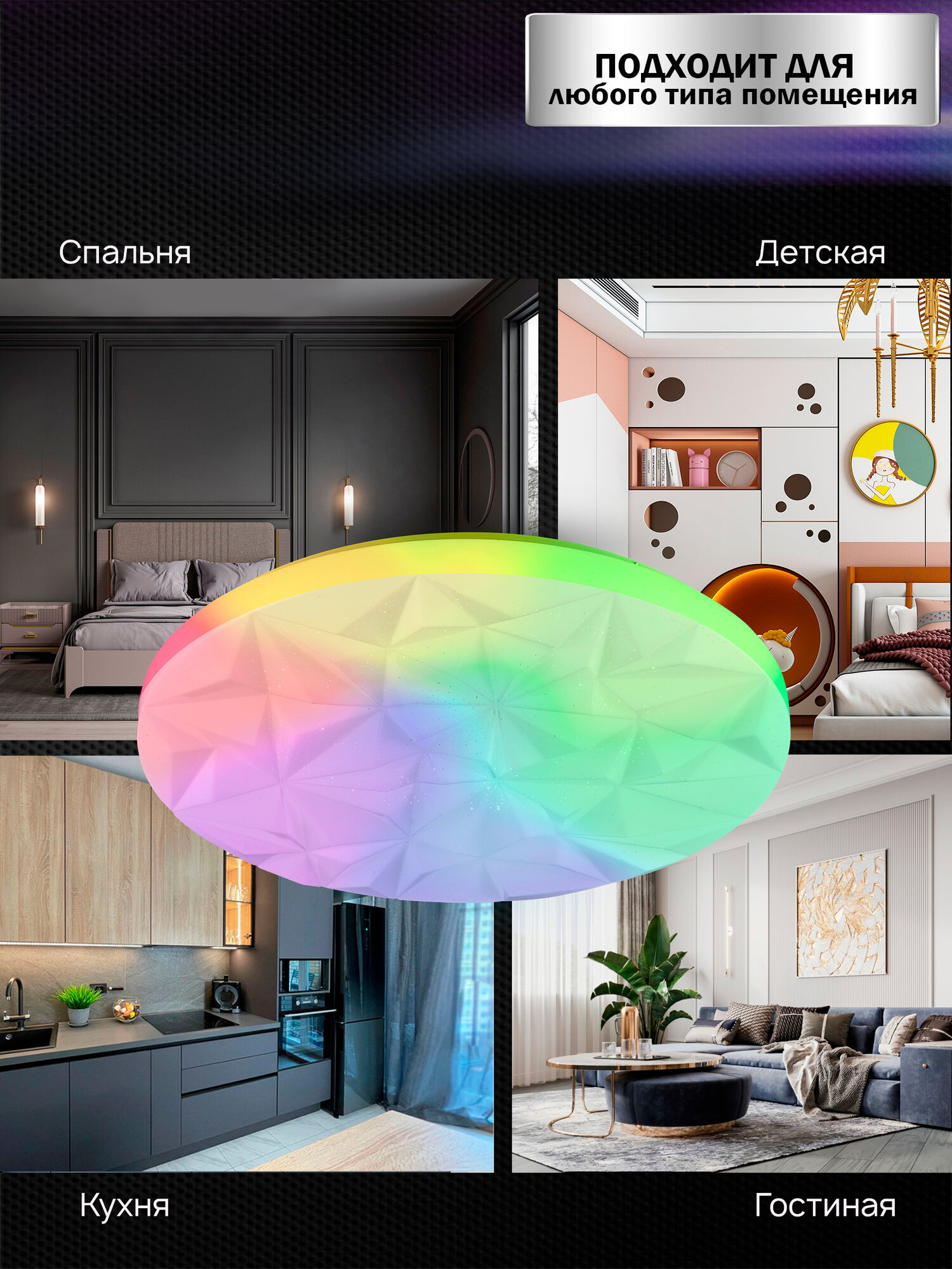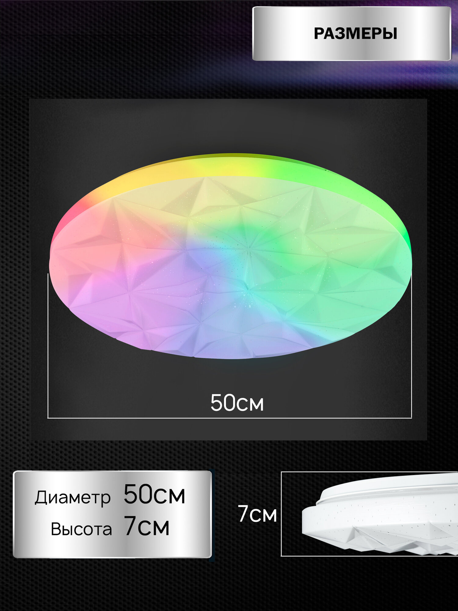 Люстра потолочная светодиодная музыкальная Семь Огней, белая с пультом и RGB подсветкой