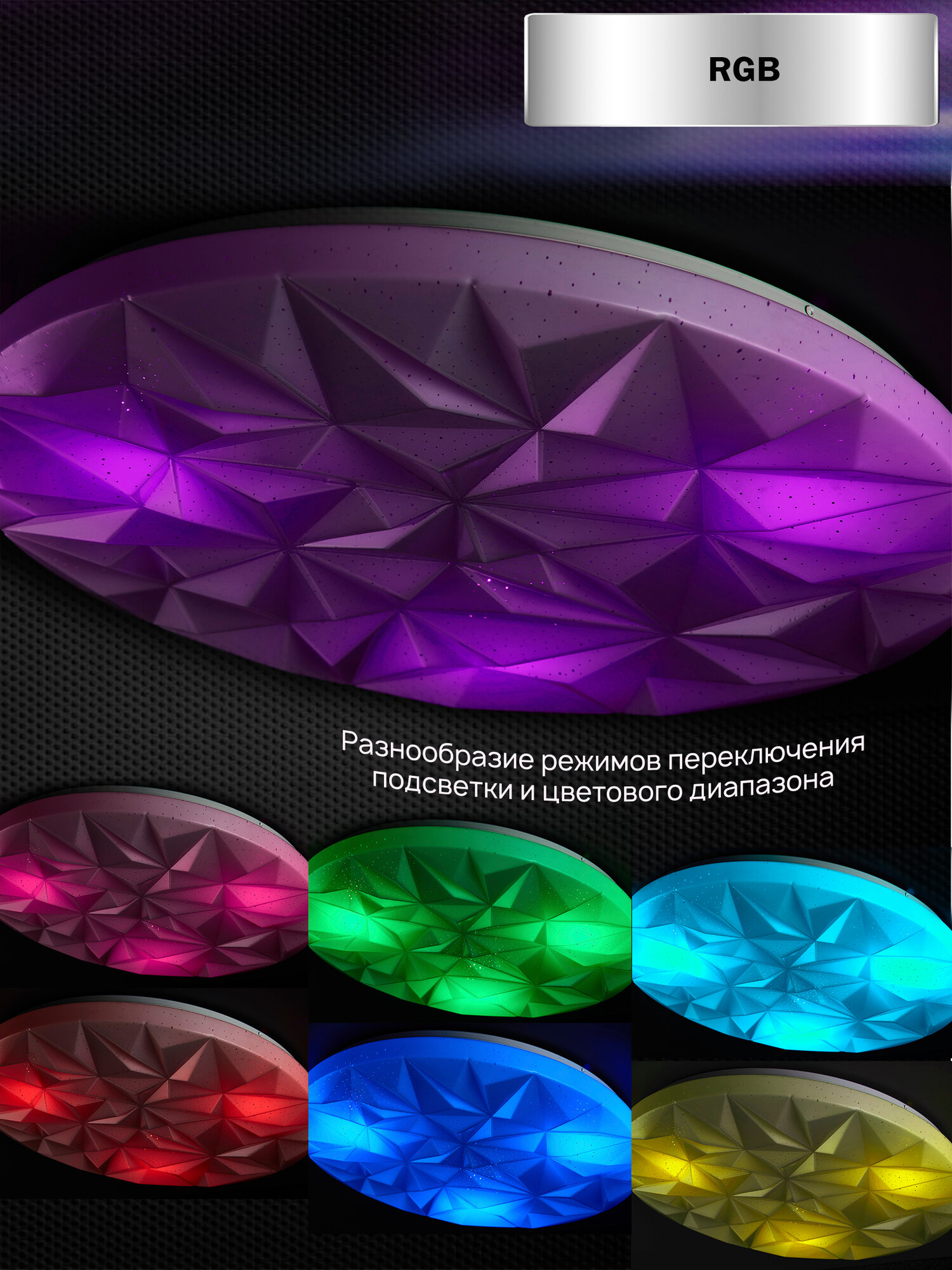 Люстра потолочная, светодиодная Семь Огней, белая, с пультом и RGB подсветкой