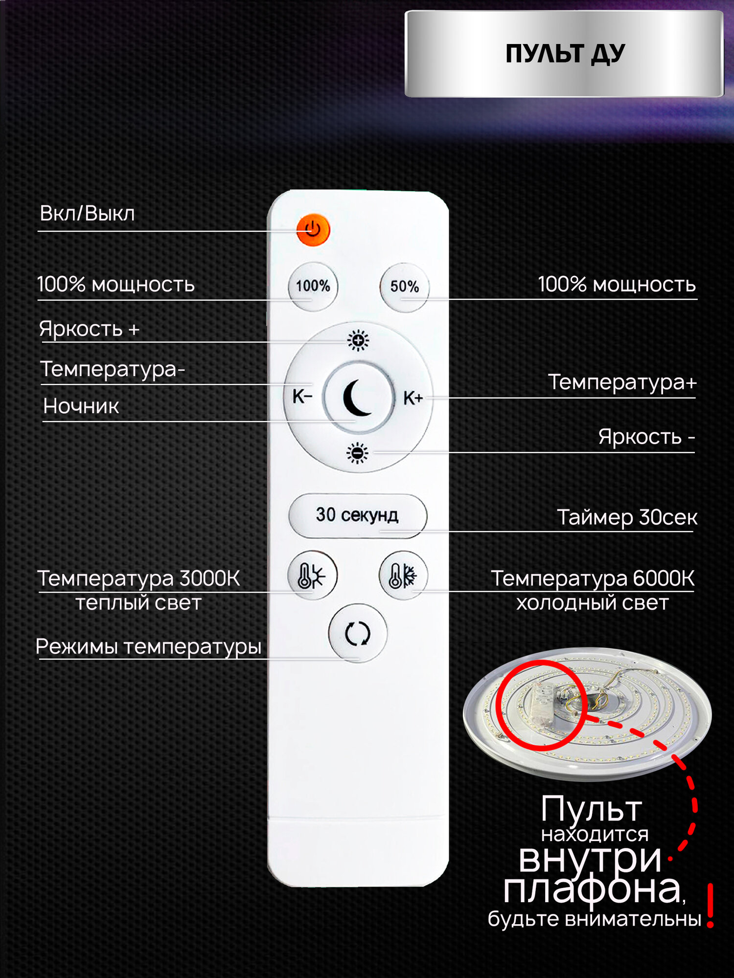 Люстра потолочная светодиодная Семь Огней, белая, с пультом, до 25 кв. м.