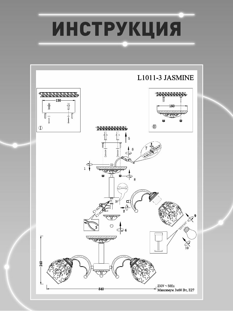 Люстра потолочная Lamplandia L1011-3 JASMINE, E27*3 макс 60Вт интересное: